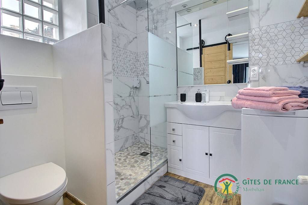 „Un excellent gîte très bien équipé, décoré avec beaucoup de goût et des propriétaires très accueillants. Nous avons passé une excellente semaine à randonner (ria d'Etel, Locmariaquer, Arzon, Carnac,...) et la présence de la mer juste en face du gîte est un vrai bonheur.“