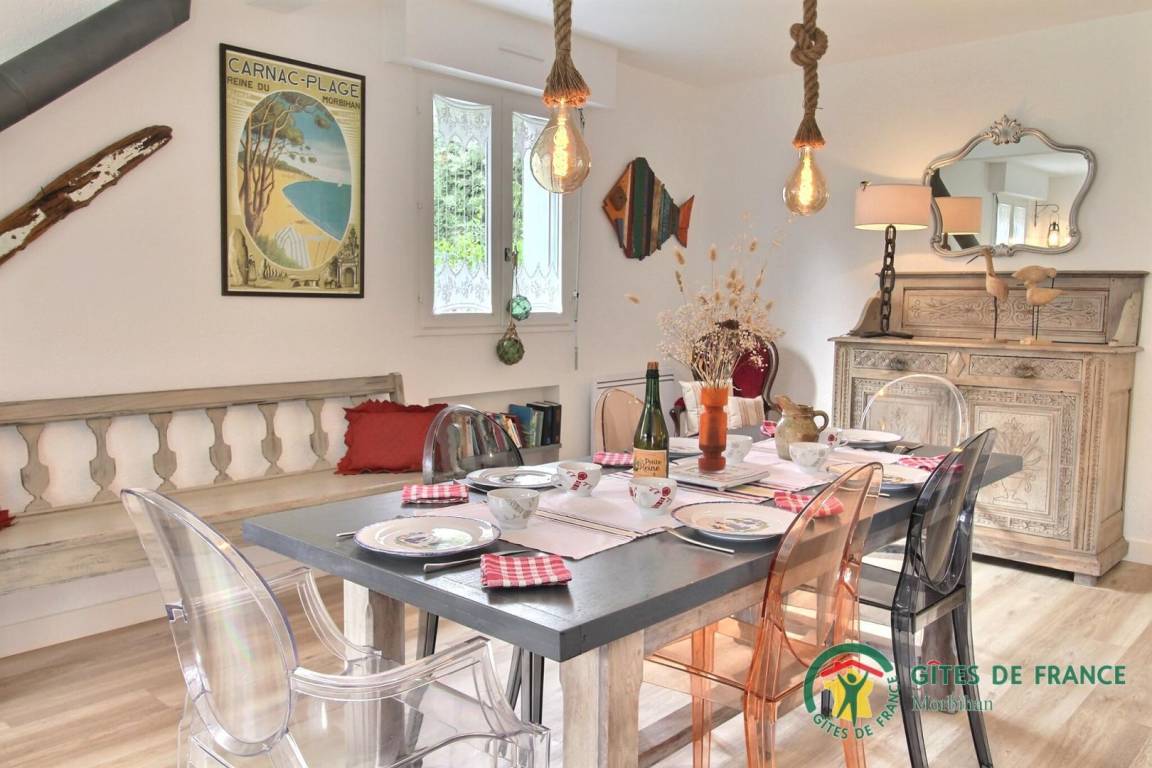 „Belle maison décorée avec gout en style marin. Confortable, bien équipée, située proche de la plage et à 10min à pied de Carnac plage. Un endroit parfait pour visiter la région. Deux terrasses permettent de profiter du soleil. Un endroit calme et reposant pour passer de bonnes vacances.“