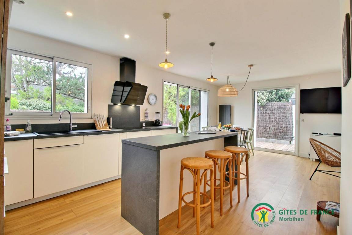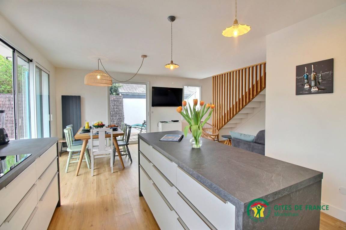 „Nous avons bénéficié d'un temps très agréable. Nous avons bien profité des plages environnantes et de la terrasse. La maison est trés fonctionnelle avec du bon matériel (un petit bémol pour les poéles anti adhésives). On peut se rendre à Carnac par le chemin cotier. Nous sommes ravis de notre séjour.“