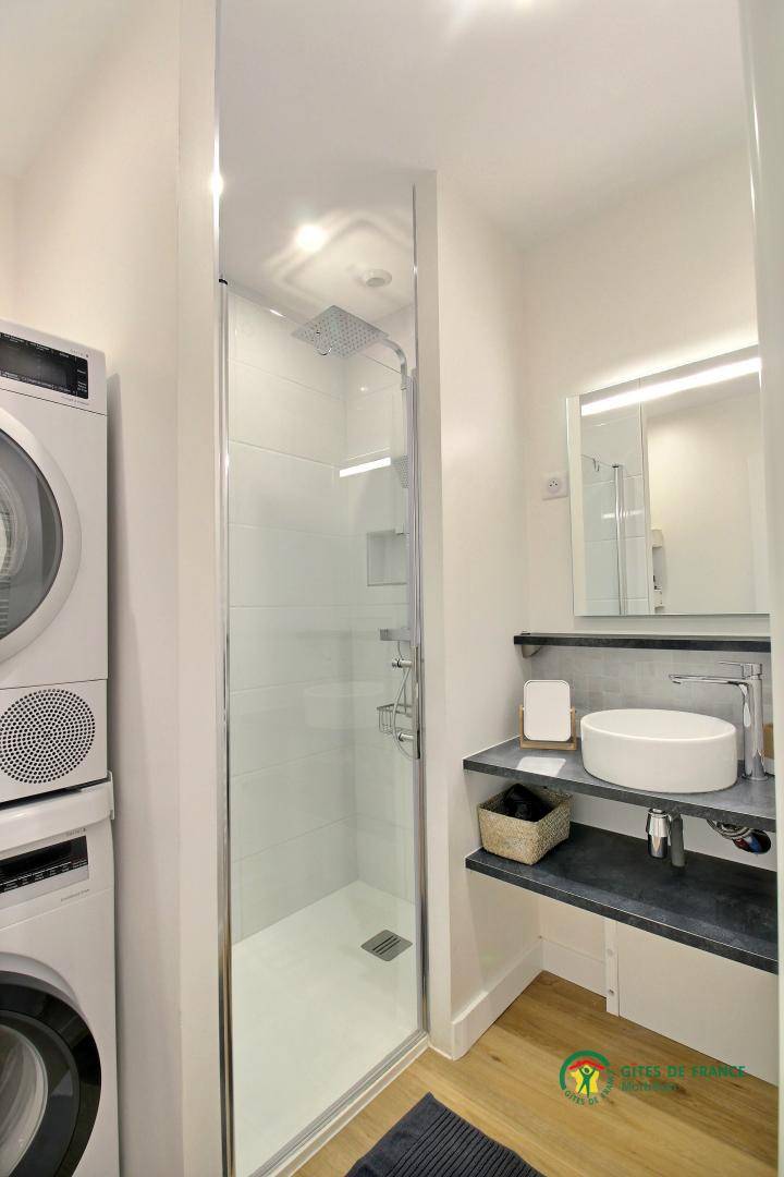 „Nous avons passé un excellent séjour dans cette maison à 2 pas de la mer (5 min à pied à peine). Nous étions 3 couples d'amis et un petit de 2 ans et nous avions chacun notre espace sans se marcher dessus. Le gîte est extrêmement bien équipé en plus d'être joliment décoré, c'est un vrai plaisir. Il y a tout ce qu'il faut pour accueillir un jeune enfant. La terrasse et le petit coin de jardin avec le barbecue ont fait notre bonheur. Merci pour ce séjour !“