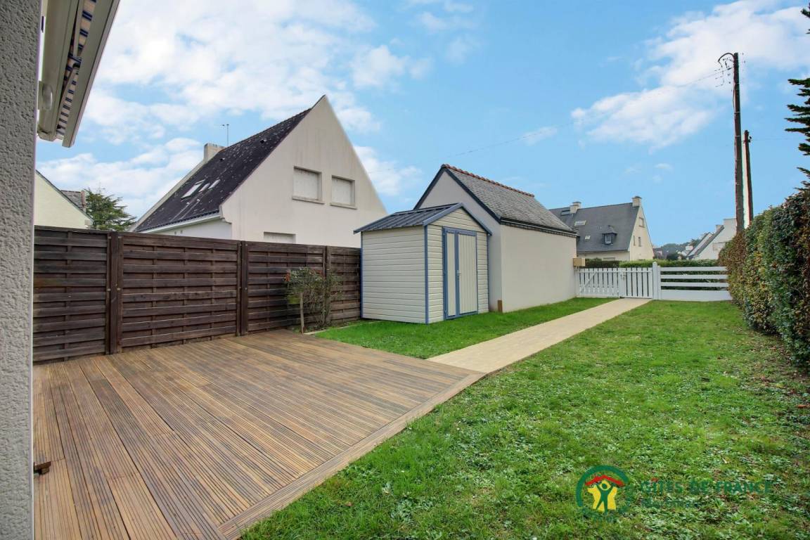 Das Ferienhaus öffnet sich im Erdgeschoss zum Wohnzimmer mit Lounge, Wohnzimmer und Einbauküche. Auch auf dieser Ebene: eine Toilette und eine Waschküche. Obergeschoss: 3 Schlafzimmer mit jeweils 1 Bett 140, dann ein Badezimmer mit WC. Draußen genießen Sie einen umzäunten Garten mit zwei Terrassen und einem Parkplatz.