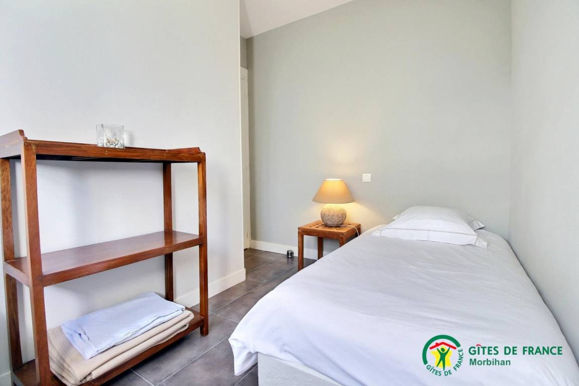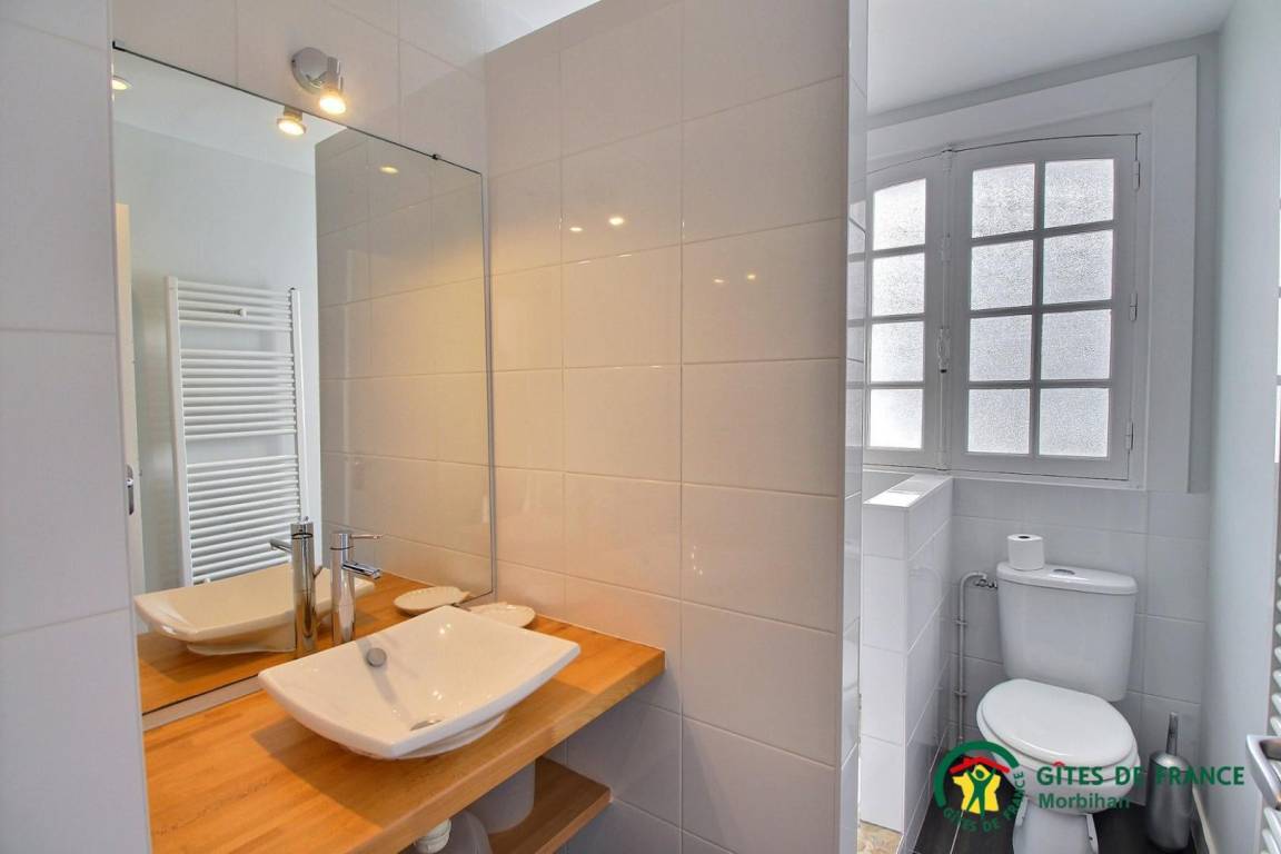 Dieses Ferienhaus bietet Ihnen im Erdgeschoss: eine ausgestattete Küche, ein Wohnzimmer mit Wohnzimmer und Lounge, ein Schlafzimmer (1 Bett 90), ein Duschbad mit WC. Obergeschoss: ein Schlafzimmer (1 Bett 140) mit eigenem Duschbad, zwei Schlafzimmer (jeweils mit einem 160 Bett teilbar in 2x80), ein Duschbad mit WC. Draußen: eine Terrasse, ein großer Kieshof zum Parken von Fahrzeugen, ein Garten. Weitere Parkplätze in der Straße (kostenlos). Doppelhaushälfte bei 56G34920.