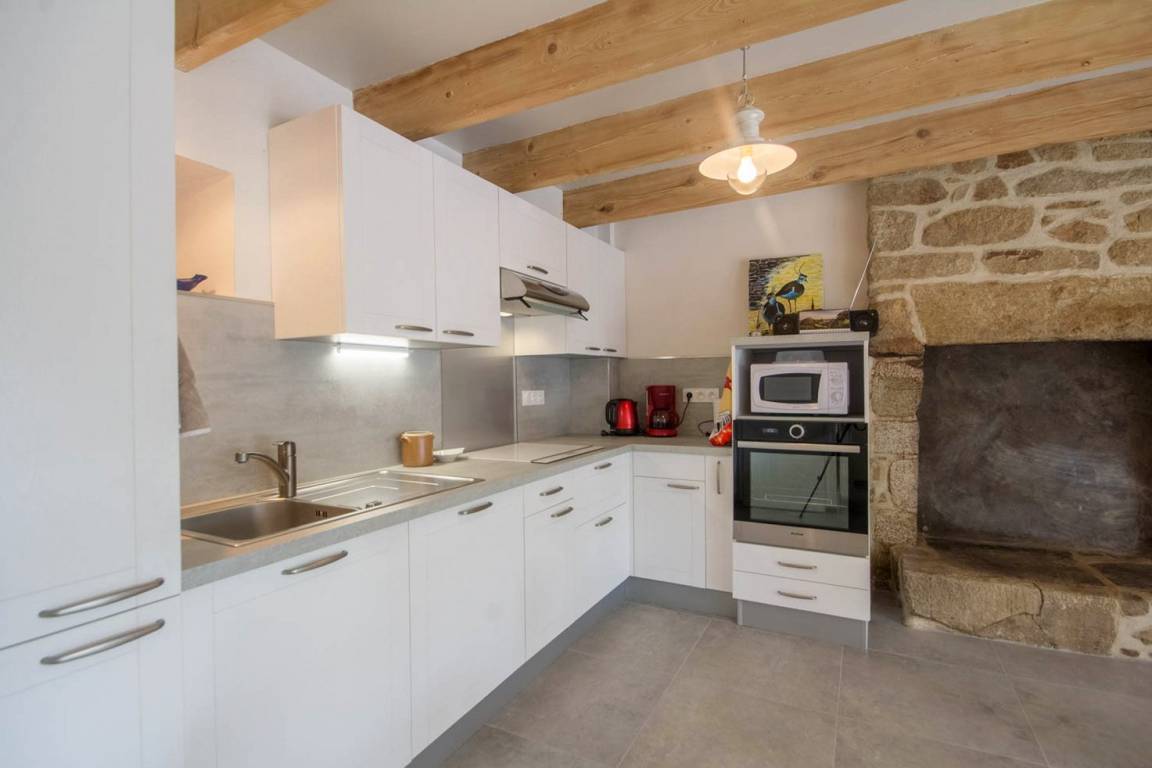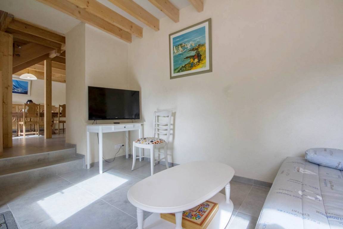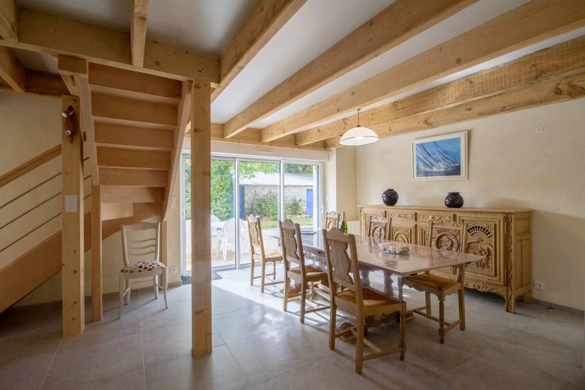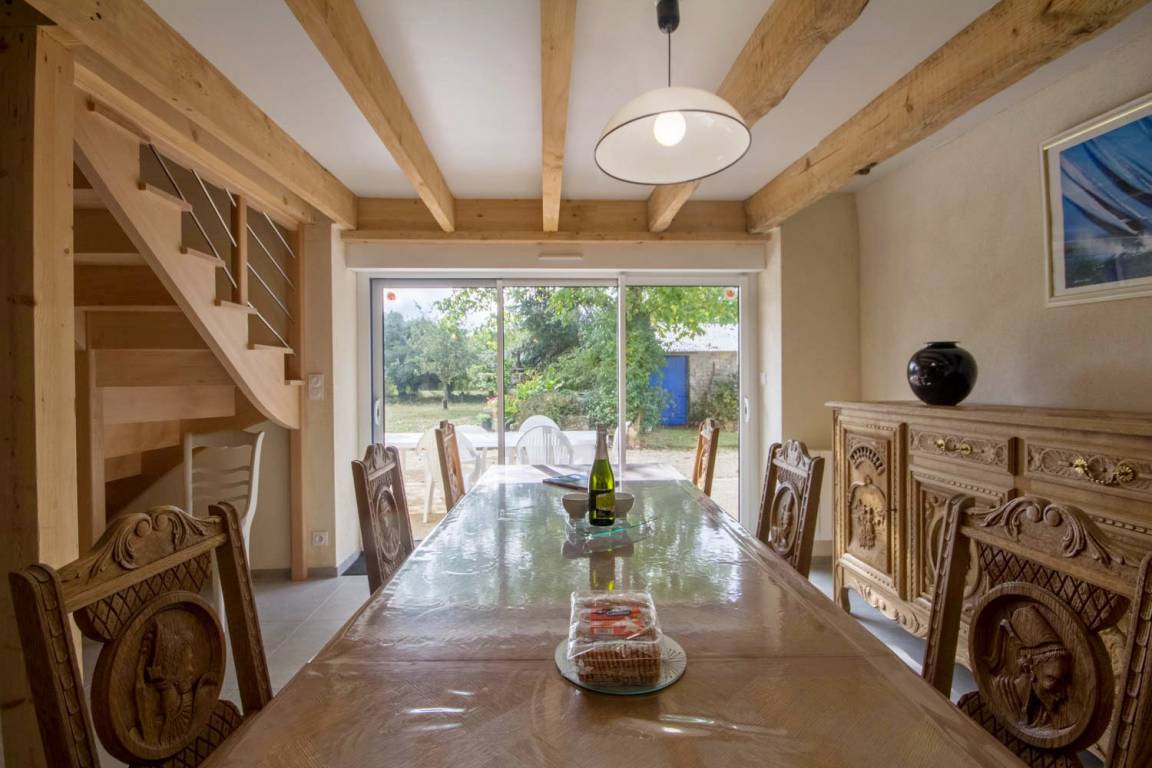 Verbringen Sie einen unvergesslichen Urlaub in Carnac im Süd-Morbihan! Dieser Badeort ist einer der beliebtesten der ganzen Region mit seinen langen Stränden mit feinem Sand. Zahlreiche Freizeitmöglichkeiten für Ihren Urlaub: Wandern, Wassersport, Segeln, Reiten, Tennis usw… Carnac ist weltbekannt für seine Menhir-Steinreihen und für seine historischen Kulturschätze. Wer eine Wellness-Pause einlegen möchte, kann sich im Thalassozentrum entspannen. Für fröhliche Urlaubsabende bietet Carnac auch viele Bars und Restaurants, sowie ein Spielkasino: viel Spaß für alle! Das Ferienhaus liegt wunderbar an der Ortseinfahrt von Carnac. Hier finden Sie angenehme Ruhe in einer schönen Umgebung im Grünen, die Nachteile des Trubels in Küstennähe spürt man hier gar nicht. Das Ferienhaus wurde 2018 renoviert und bietet großen Komfort: moderne Ausstattungen und von der Vermieterin neu gestaltete Möbel. Sehr gemütlich, man fühlt sich pudelwohl hier. Im EG: Wohnbereich mit Wohnzimmerecke, Essbereich und k