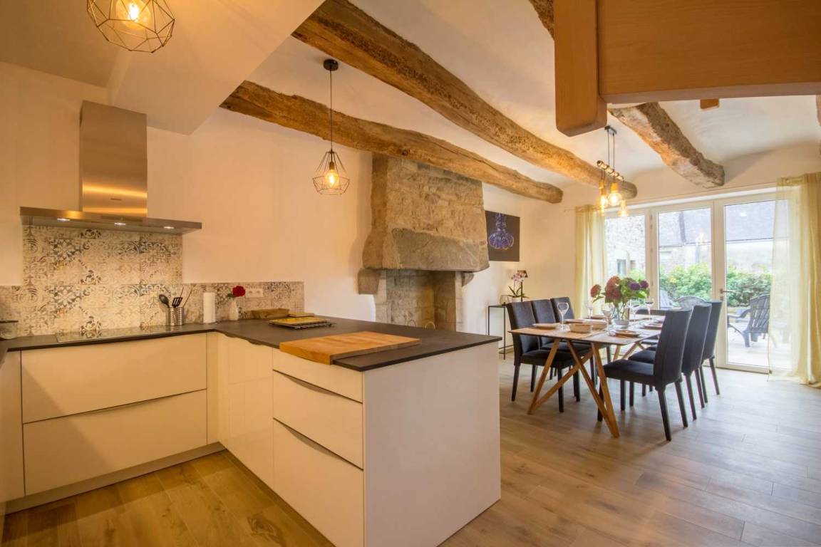 „Maison spacieuse et bien exposée, très calme et propre. Situation géographique idéale: Au sein d'un village typique et restauré authentiquement, proche des sites touristiques immanquables du Sud Bretagne. Grande maison comprenant une belle salle de bain attenante à chaque chambre, cuisine ouverte et moderne, bien équipée. Chiens acceptés sans supplément, un grand plus. Terrain clos. Hôte bienveillante et toujours disponible.“