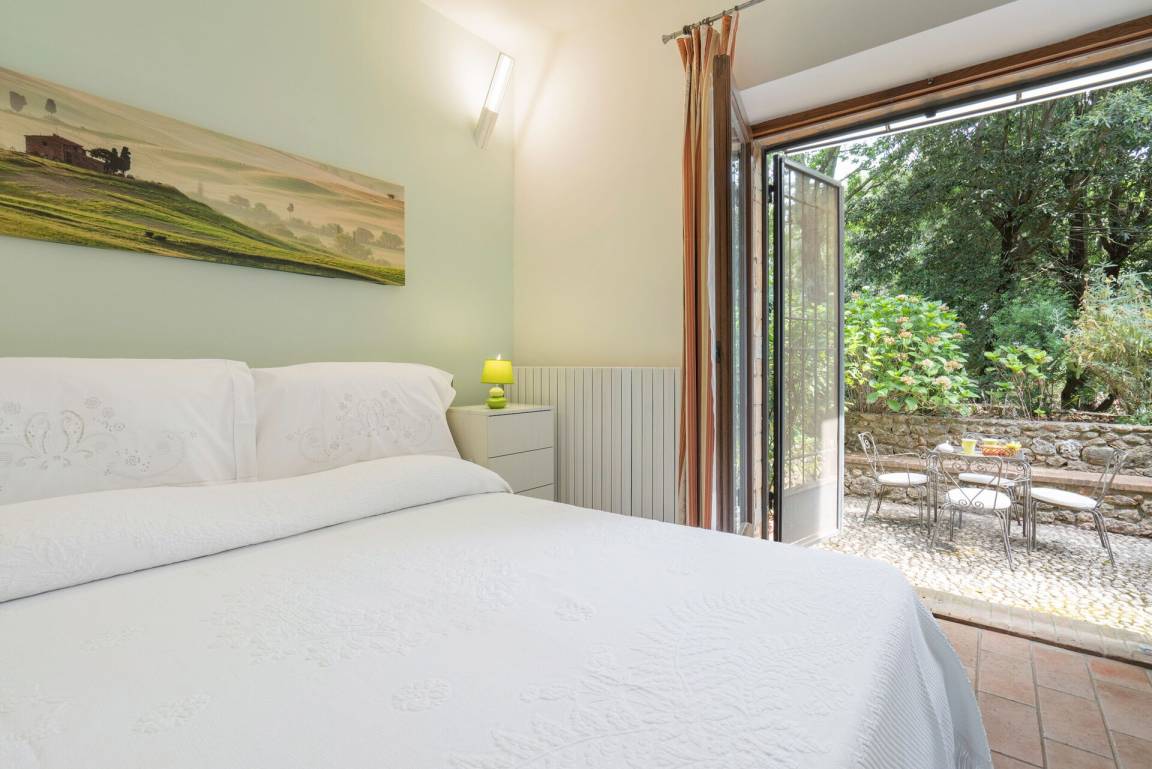 Schlafzimmer: Doppelbett (Breite: 160m, Länge: 200m), WiFi Internet, Ausgang auf den Garten.
