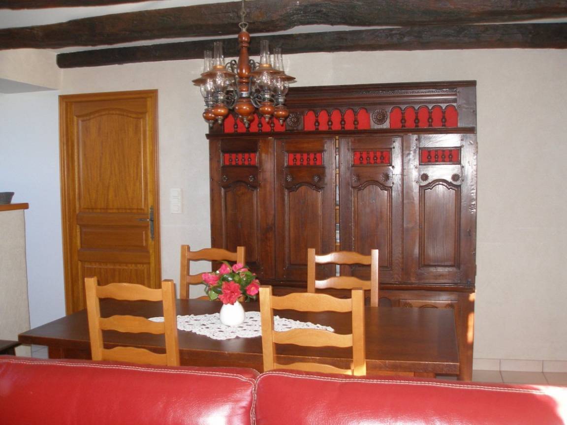 Vollständig unabhängiges Haus. EG : Wohn-/Eßraum mit Kochecke und Kamin (Holz gratis). Doppelzimmer (Bettbreite 1,60m) + Dusche, Waschküche, sep WC. 1.Stock: Zweibettzi., Doppelzi. mit Babybett, Schlafecke mit Einzelbett (0,80m), Bad, sep. WC. Ölzentralheizung. Garten. Garage/Spielraum. Tischtennis und -fußball, Überdachter Platz mit Kamin, Boules-Platz, Schaukel.