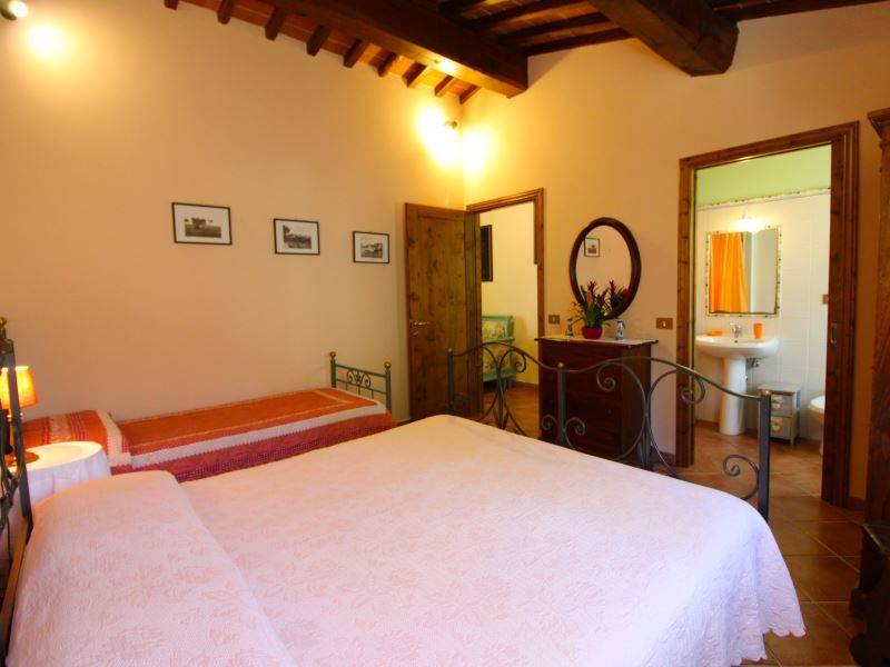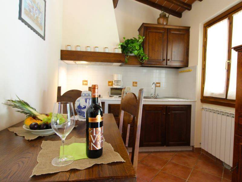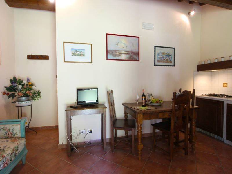 Wohnung im Erdgeschoß. Wohn-/Eßzimmer mit Kochnische, Doppelzimmer mit Einzelbett und Bad mit Dusche.