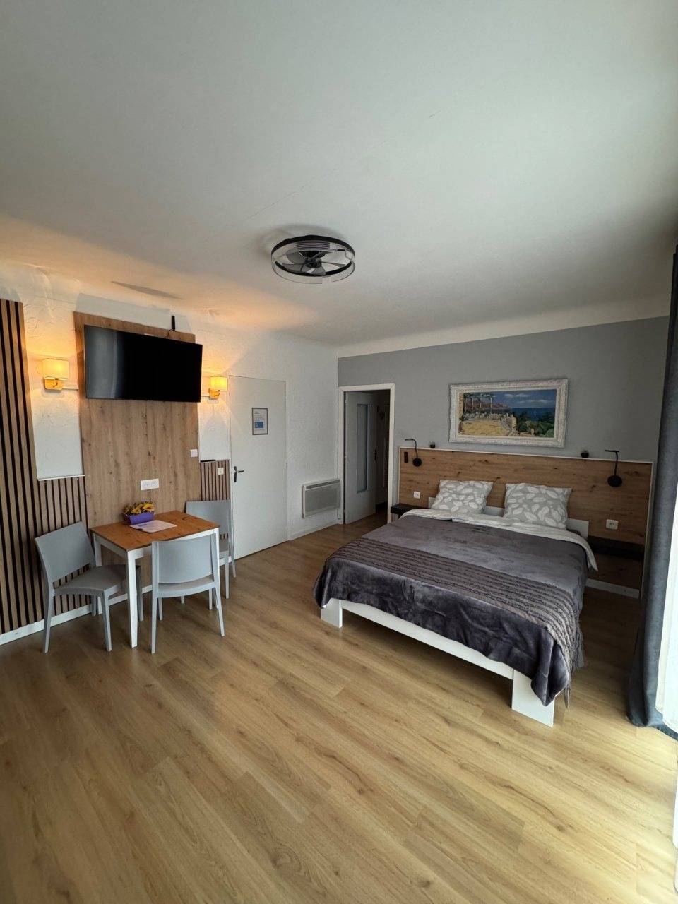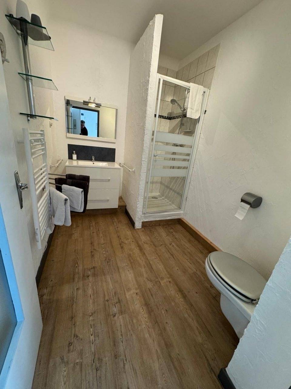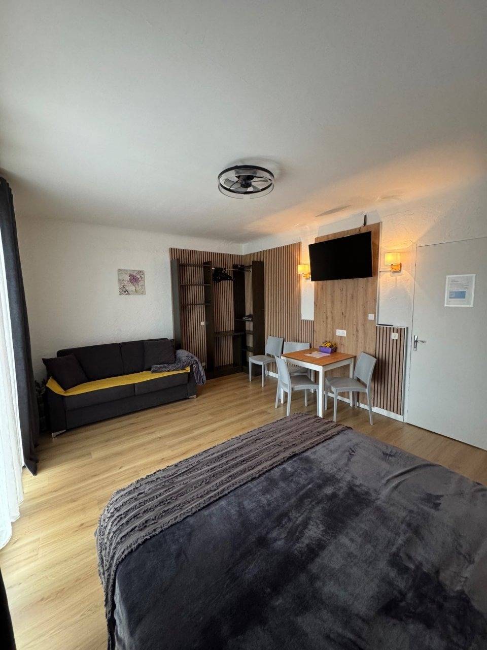 Unser Superior-Vierbettzimmer mit Balkon bietet ein Doppelbett 160x200 und Schlafsofa 160x200, Badezimmer mit Waschbecken, Dusche + WC, Kleiderschrank, Tisch und Stühle, Zweier-Sofa, Bettwäsche, Handtücher, Seife und Haartrockner, direkter Blick in die Berge.Unsere Chambres dhôtes hat vier Gästezimmer, ein Zimmer mit Balkon und ein Zimmer mit Wintergarten und Balkon Alle Zimmer können die große Terrasse nutzen Wir haben extra Parkplätz für Autos auch mit Anhänger und separate Motoradparkplätze.