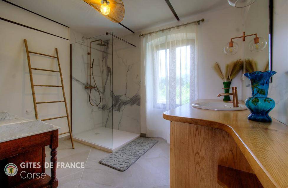 Weniger als 5 Kilometer vom Meer entfernt, an der Straße, die Bastia mit dem äußersten Süden verbindet, freistehendes Steinhaus mit 148 m² auf zwei Ebenen, in einem Weiler, der aus anderen Häusern besteht, darunter das der Eigentümer. Die Unterkunft ist wie folgt ausgestattet: