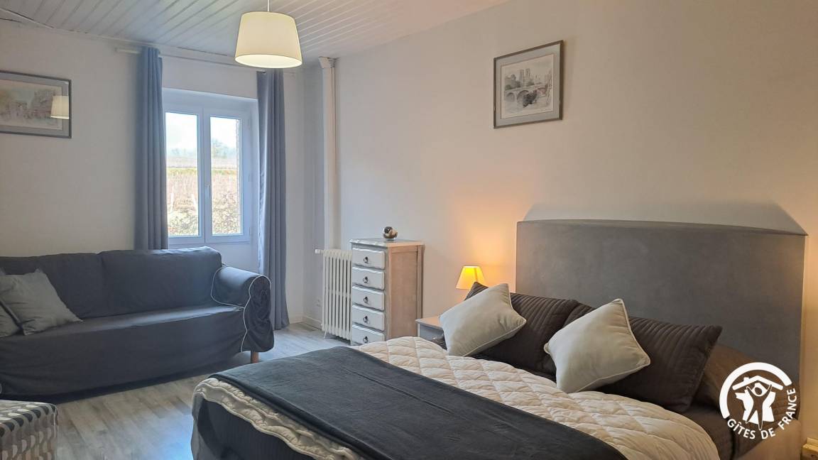 „Nous avons loué pour notre rencontre annuelle les deux gîtes car nous étions 14 amis franco allemand.Nous avons tous été enchanté des lieux. Grandes chambres avec de lits très confortables. Gites très bien équipés avec de grandes cuisines pour partager nos repas. Acceuil des propriétaires très amical. Un plus une boutique qui permet de déguster le vin des propriétaires entre autre et des produits régionaux. En un mot séjour très réussi en partie grâce à nos hôtes“