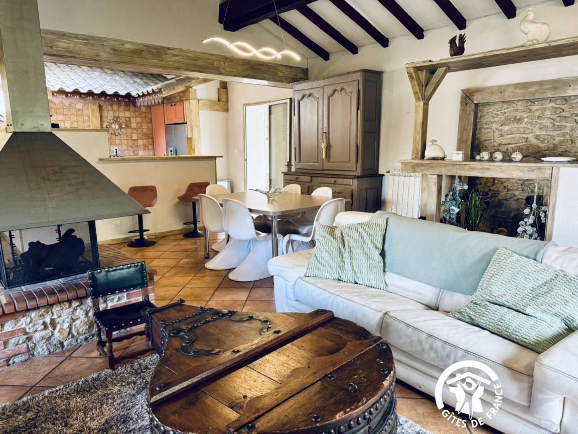 „Très agréable gite avec beaucoup d'espace parfait pour une grande famille et pour réunir ses proche. Grande pièce pour une belle tablée très lumineuse. C'est la campagne avec tout son charme où une voiture est indispensable. Belle piscine. Je recommande“