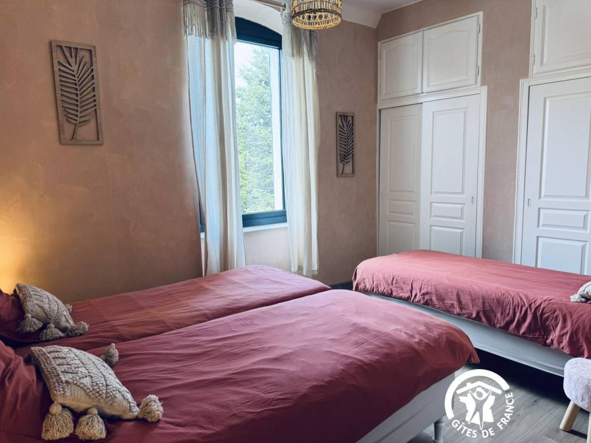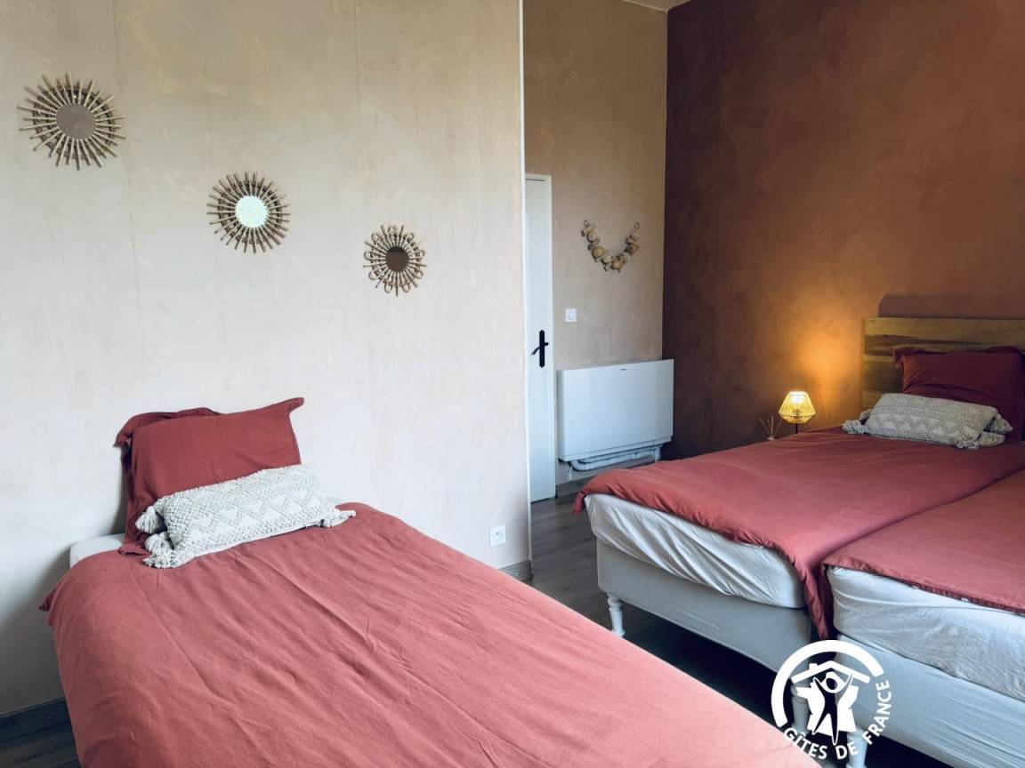„Deuxième année que nous séjournons en famille dans ce gîte, et toujours agréable. Bien à l'écart de la ville, la vue de la campagne est magnifique. La piscine est grande pour permettre la nage des grands et les jeux des plus jeunes. La maison est très bien équipée et bien entretenue.“