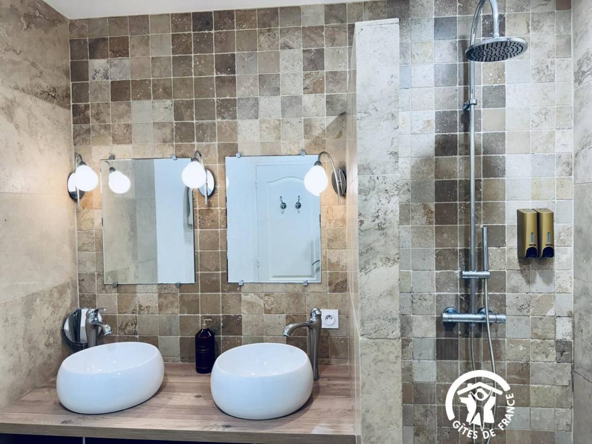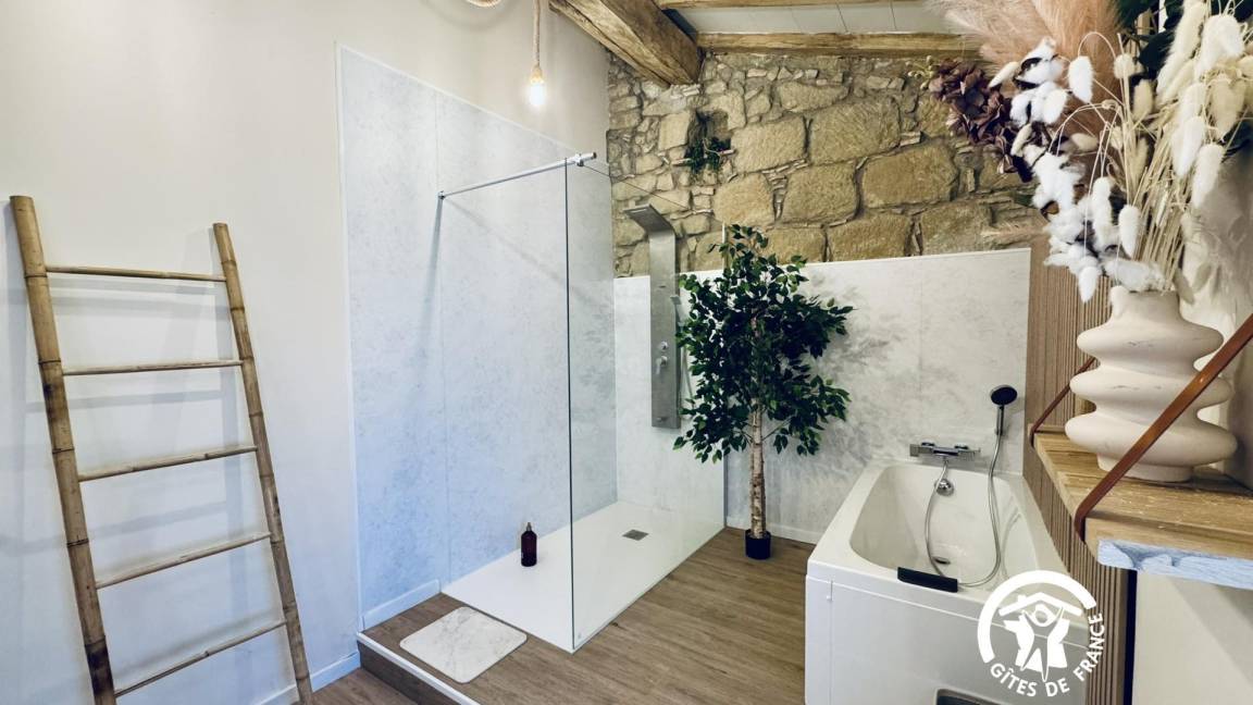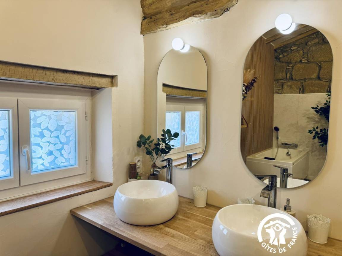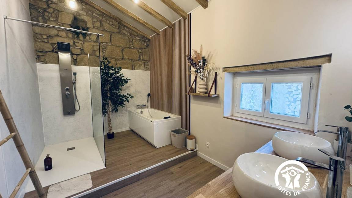 „Magnifique maison, une terrasse d'où nous avons pu admirer le lever du soleil sur les vignes, la cheminée centrale, fonctionnelle, un pur bonheur...je recommande l'hôte et la maison, le lieu“