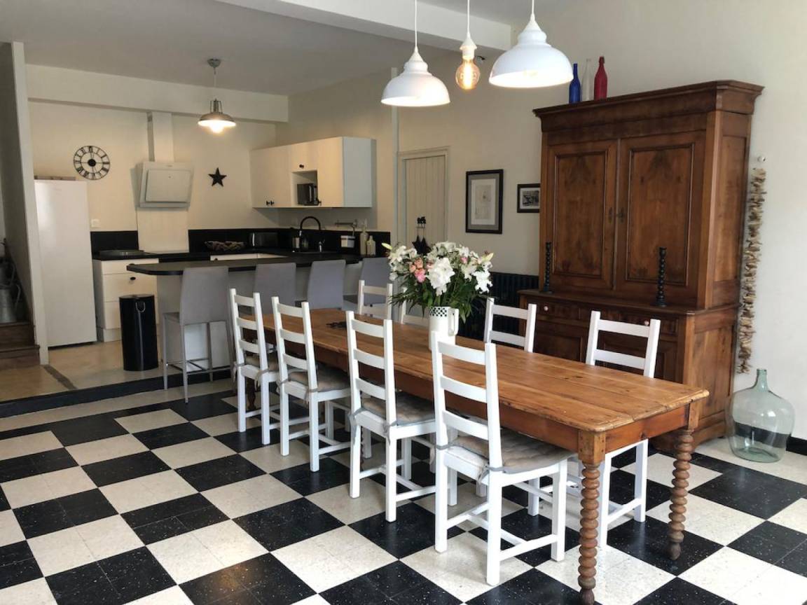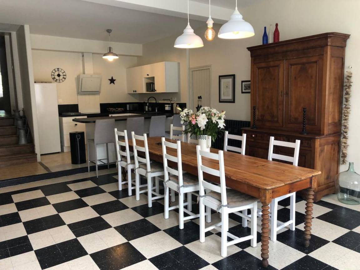 „Nous avons séjourné en famille pour les fêtes de fin d'année dans ce gîte qui a tout d'une vraie et grande maison familiale. Dès notre arrivée, une petite attention nous attendait. Cette délicatesse était à l'image des charmants propriétaires. Tous les ustensiles nécessaires à de bons festins sont présents en cuisine. La multitude de salles de bain permet un séjour apaisé dans l'organisation. Je recommande cet endroit pour son cadre bucolique, ses hôtes et la douceur de vivre. Nous avons, de surplus, été gentiment accueilli pour célébrer le 31 décembre en musique.“