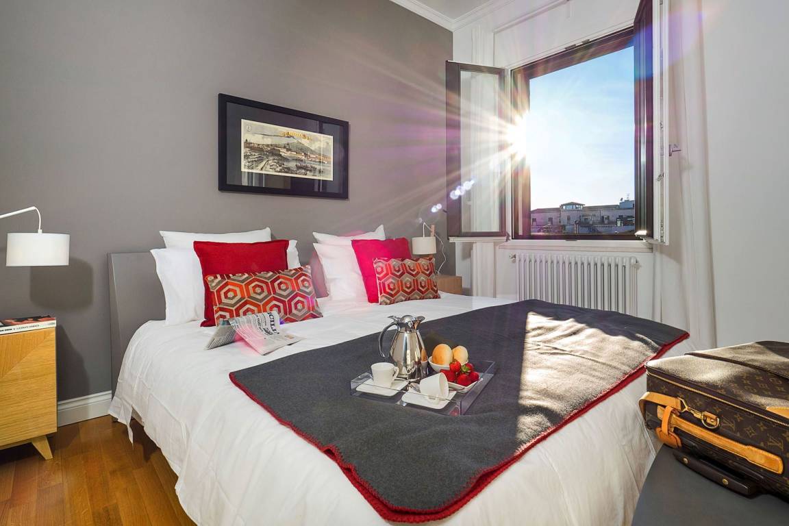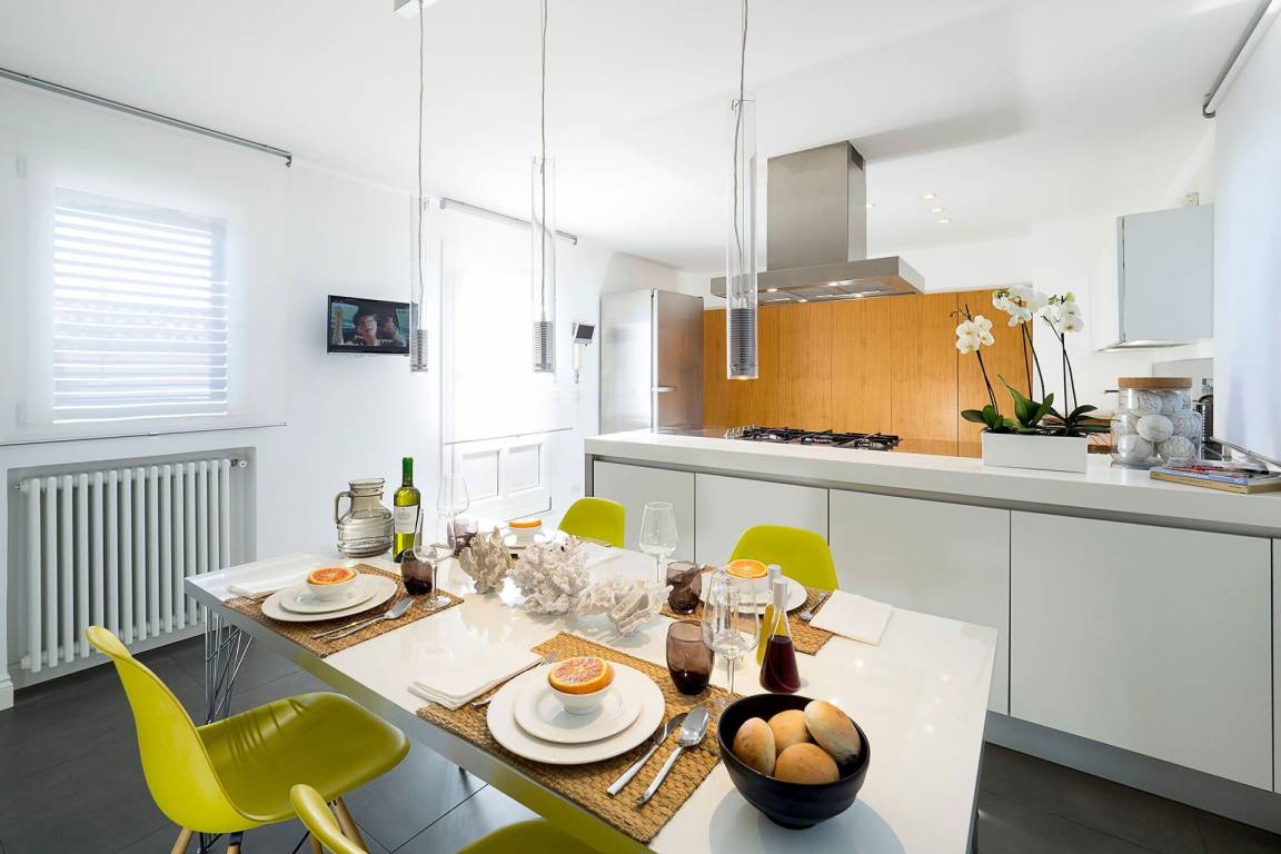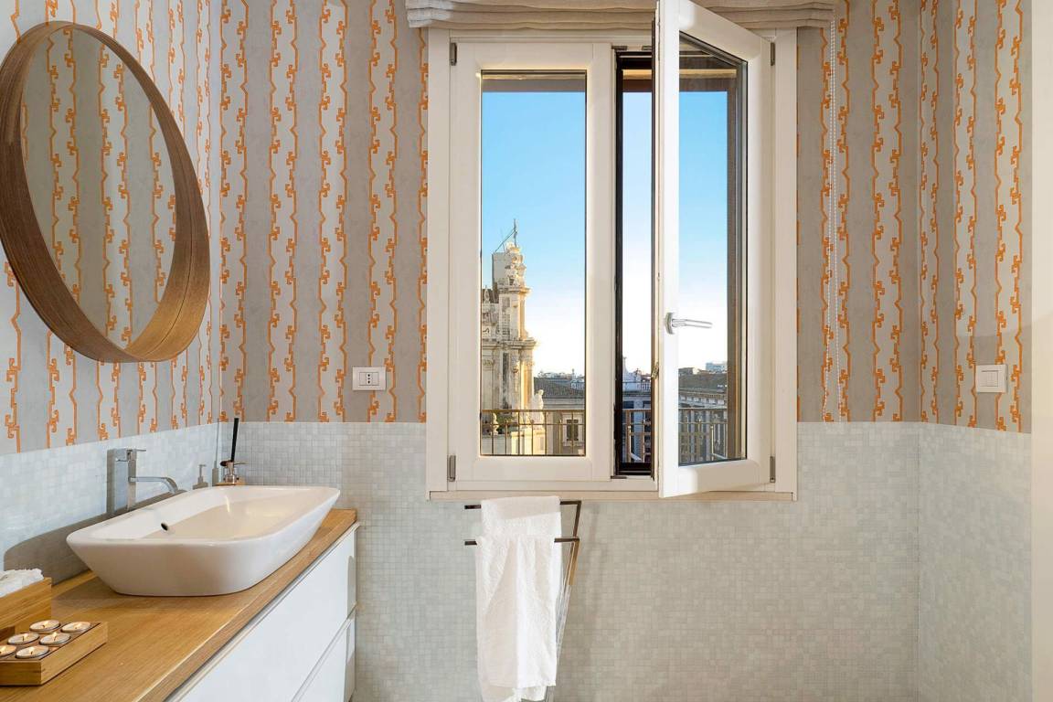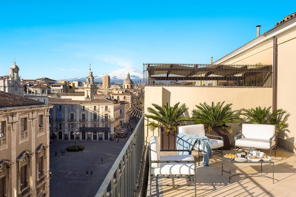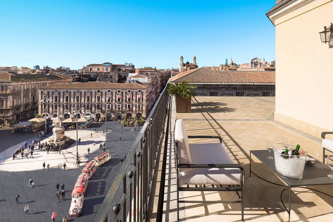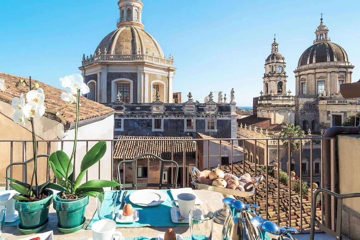 Die Ferienwohnung La Terrazza umfasst insgesamt 2 Schlafzimmer und 3 Bäder und bietet Platz für bis zu 4 Gäste. Die Wohnung ist auf einer Ebene angeordnet und verfügt über Wohnräume, die sich zu privaten ausgestatteten Terrassen öffnen. Diese Terrassen bieten Ausblicke auf die Dächer Catanias und stellen ein charakteristisches Merkmal der Unterkunft dar.