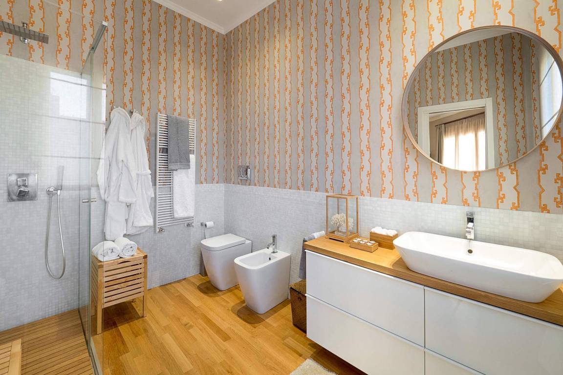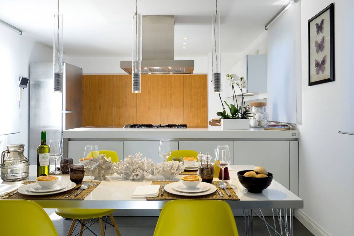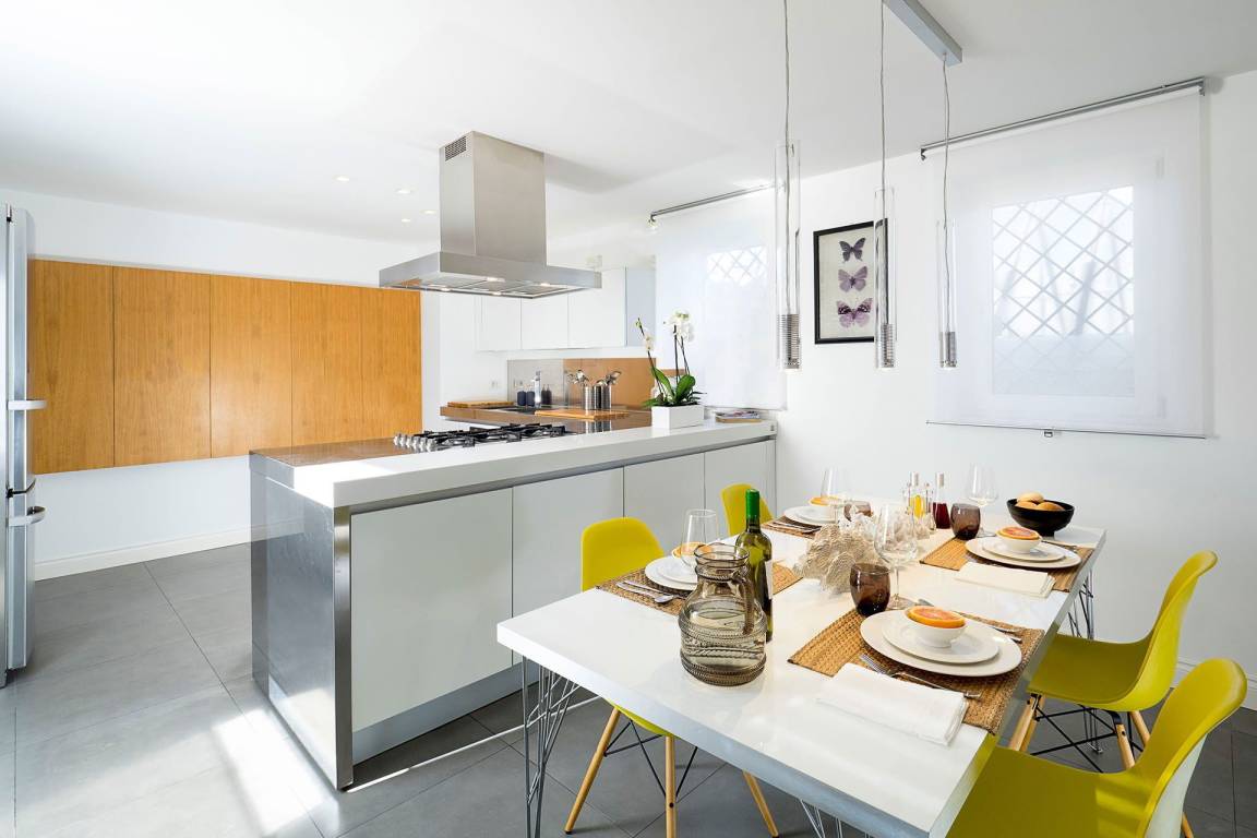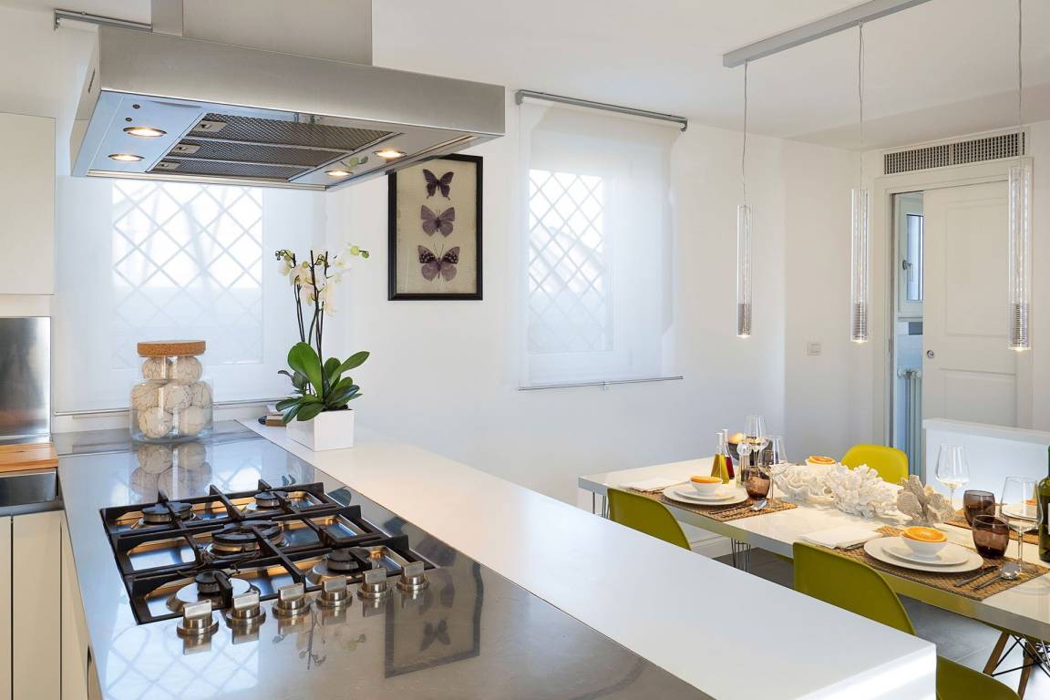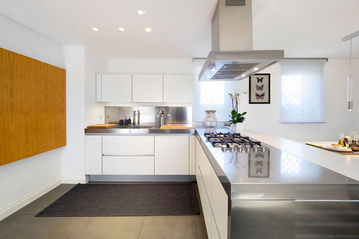 Die Küche ist mit einer Geschirrspülmaschine und einer Mikrowelle ausgestattet. Die Klimatisierung erfolgt durch Klimaanlage und Heizung in der gesamten Wohnung; eine Waschmaschine steht zur Verfügung. Ein Fernseher ist vorhanden. Die privaten Terrassen sind mit Möbeln ausgestattet.