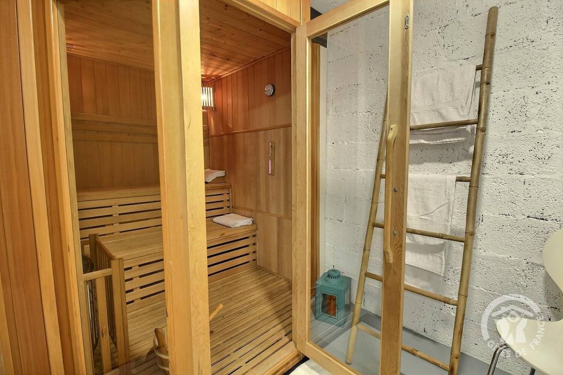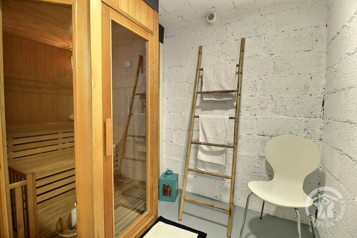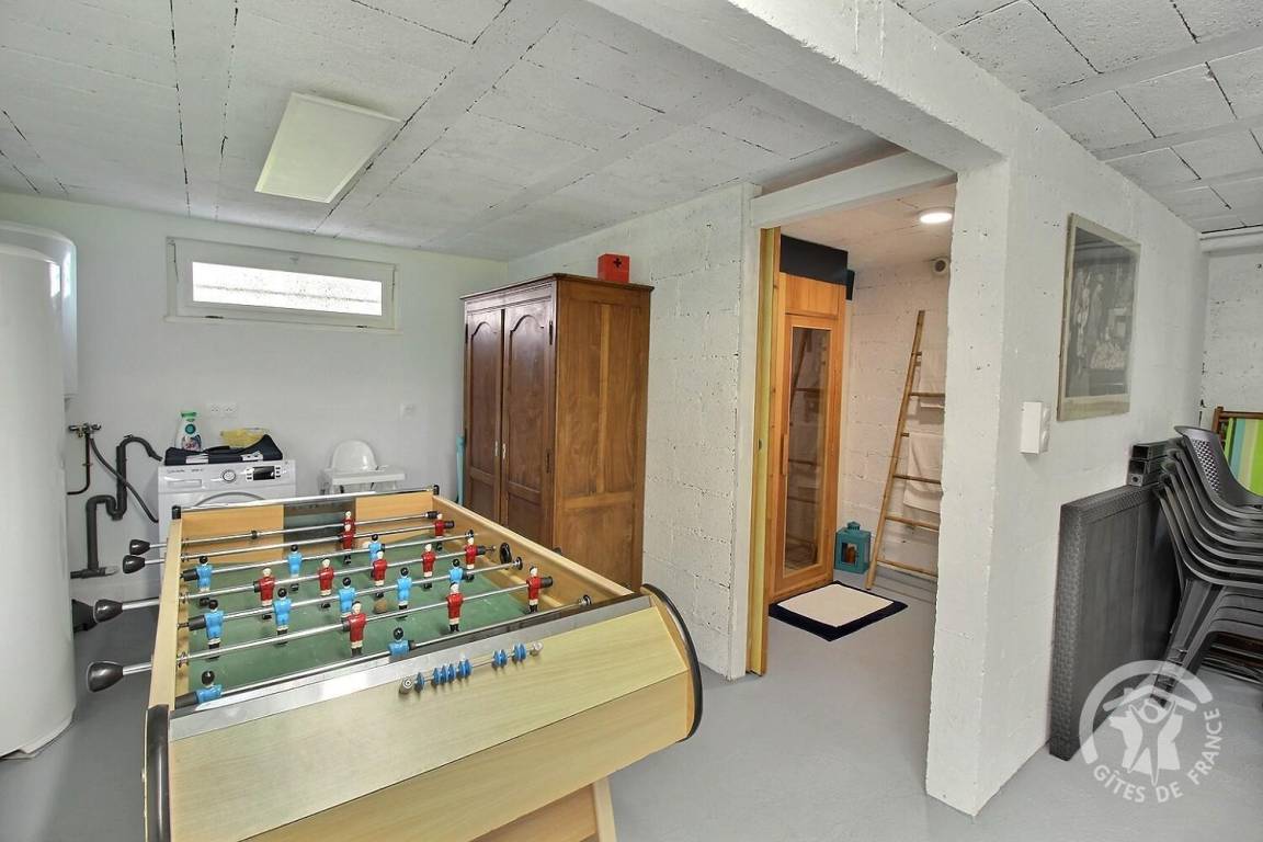 1 Sommerküche, ein Spielzimmer mit Ruhebereich ausgestattet mit einer Sauna, 1 Schlafzimmer (1 160x200 Bett), ein kleines Badezimmer (Dusche) und 1 separates WC.
