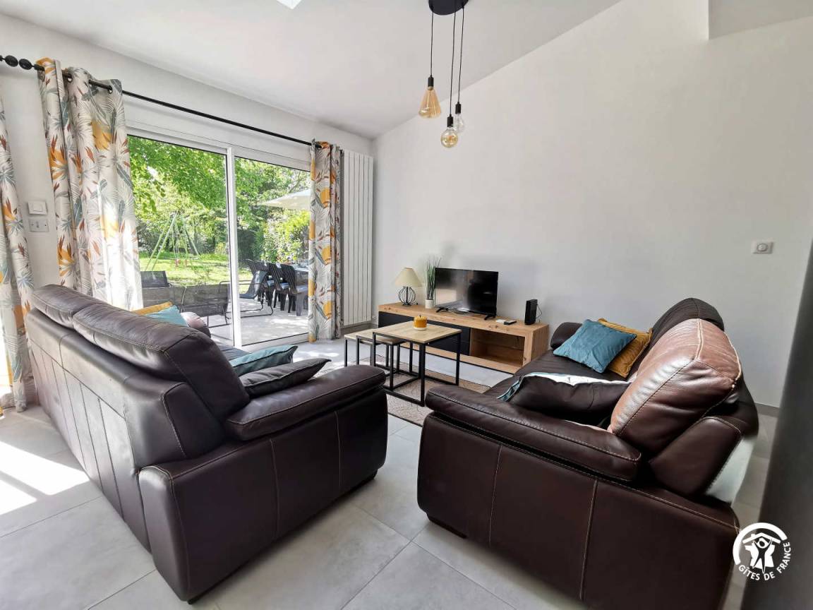 „Gîte moderne et très lumineux avec un joli jardin et un terrain de pétanque extra. Les propriétaires sont très accueillants et aux petits soins. Nous avons passé un très chouette week end avec enfants et petits enfants qui se sont régalés dans le jardin.“