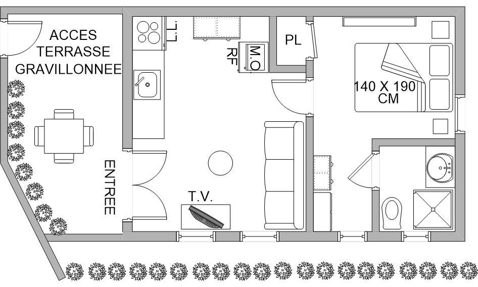 25 m² Gîte ∙ 1 Schlafzimmer ∙ 2 Gäste