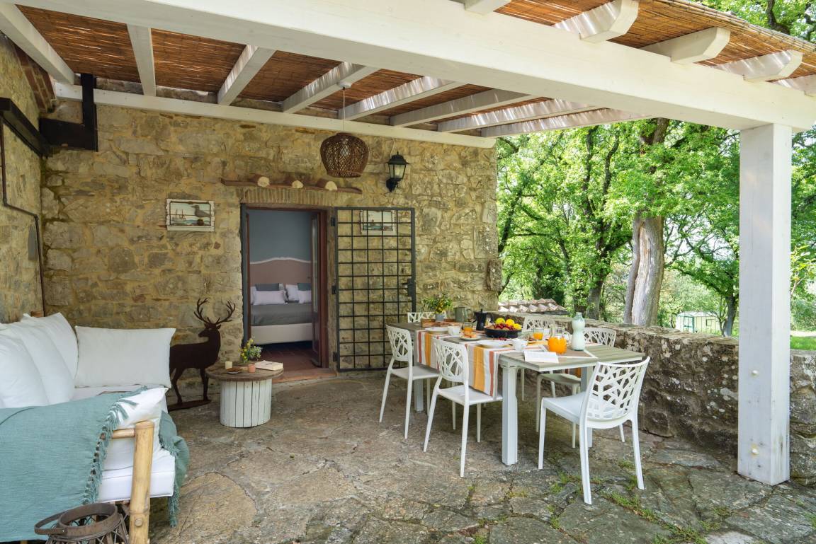 offener Raum: Sofa (Personen: 0), Kamin, Esstisch (Personen: 0), WiFi Internet, Klimaanlage, Satelliten-TV, Ausgang auf den Patio.
