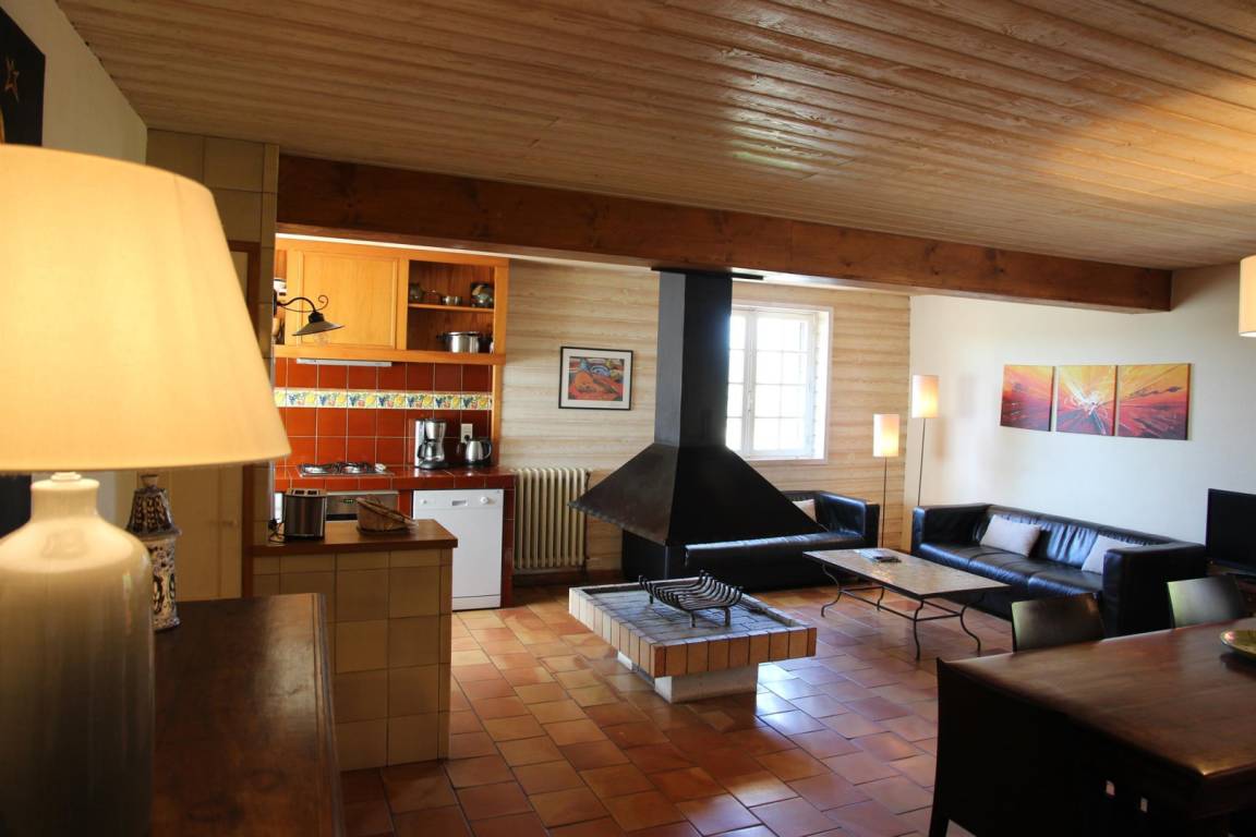 Erdgeschoss: große Wohnküche mit zentralen Kamin, TV, Küche, Bar. WC-Indep. 1 Schlafzimmer mit Badezimmer (1 Bett 2 Personen 160 cm). Stock: 3 Schlafzimmer (2 Betten in 160 cm. 2 Betten 1 pers.), Bad, wc-Indep. Chauff.central-Paket 50th.