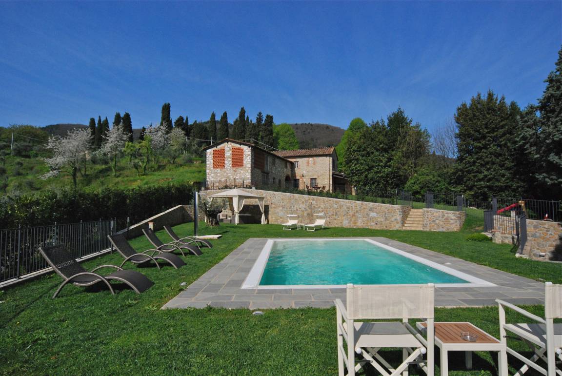 „Ein sehr schön gelegenes Anwesen mit großen Räumen im toskanischen Stil. Die großen Rasenflächen wurden täglich am frühen Morgen bewässert. Wir hatten einen sehr erholsamen Urlaub und genossen täglich den Pool mit eingebauter Gegenstromanlage. Der Pool wird 2mal pro Woche gereinigt. Wir hatten die Option die Bäder und die Küche alle 2 Tage reinigen zu lassen. Für einen Abend haben wir den uns empfohlenen Koch bestellt. Dieser servierte uns (10 Personen) ein hervorragendes toskanisches Menue, welches in der hauseigenen Küche vorbereitet wurde. Auch der Besuch eines Weinbaubetriebes mit Verkostung von 8 verschiedenen Weinen war ein schönes Erlebnis. Gerne empfehlen wir die Villa Montefiore weiter. A very nicely located property with large rooms in the Tuscan style. The large lawns were watered early in the morning every day. We had a very relaxing holiday and enjoyed the pool with built-in counter current every day. The pool is cleaned twice a week. We had the option to have the bathrooms and kitchen cleaned every 2 days. For one evening we ordered the cook recommended to us. He served us (10 people) an excellent Tuscan menu, which was prepared in the in-house kitchen. A visit to a winery with tasting of 8 different wines was a wonderful experience. We are happy to recommend Villa Montefiore.“