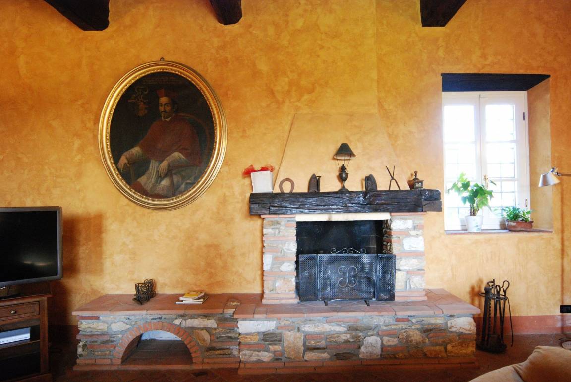 Wohnzimmer: drei Sofas (Personen: 9), Kamin, Esstisch (Personen: 12), WiFi Internet, Satelliten-TV, Video / DVD, Ausgang auf den Garten.