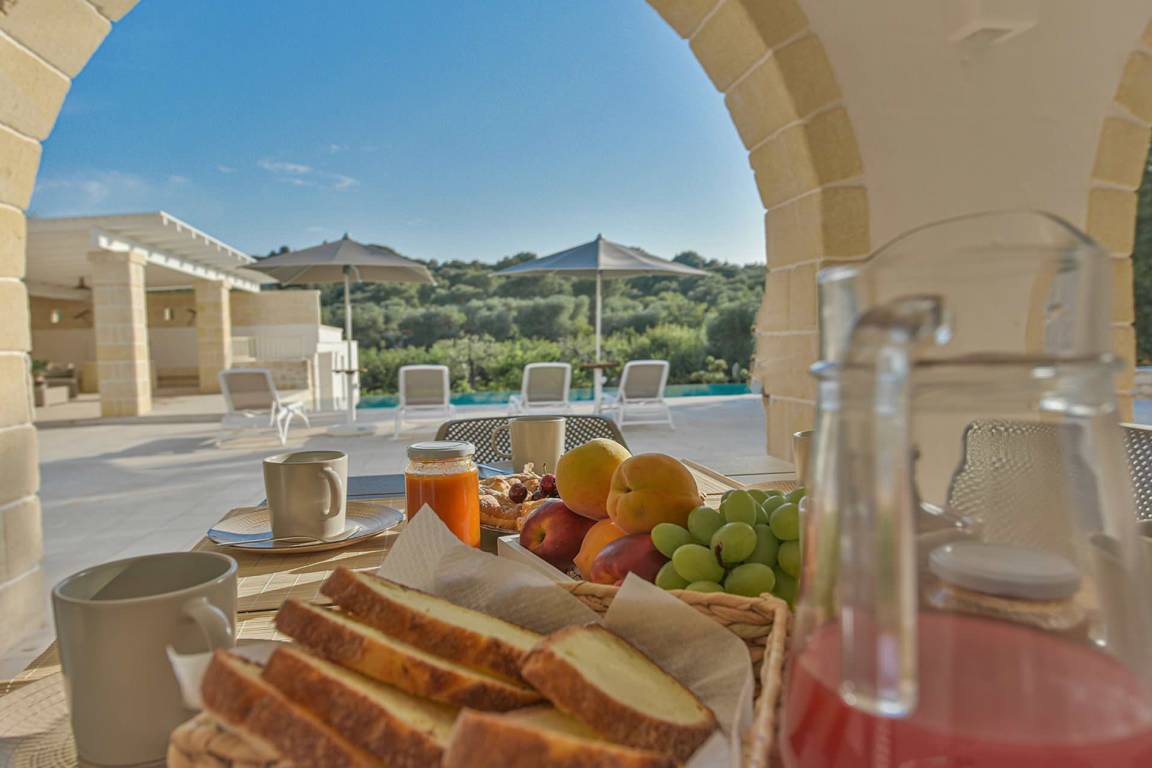 Die Küche ist mit einer Geschirrspülmaschine, einer Mikrowelle und einer Nespresso-Kaffeemaschine ausgestattet. Eine Waschmaschine steht zur Verfügung. Die Masseria verfügt über Klimaanlage und Heizung. Im Wohnbereich befinden sich ein Fernseher und Satellitenfernsehen. Wi-Fi ist im Mietpreis enthalten. Für den Außenbereich stehen ein Grill, eine private Terrasse und ein privater Garten zur Verfügung. Ein Babybett ist kostenlos verfügbar.