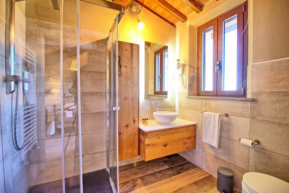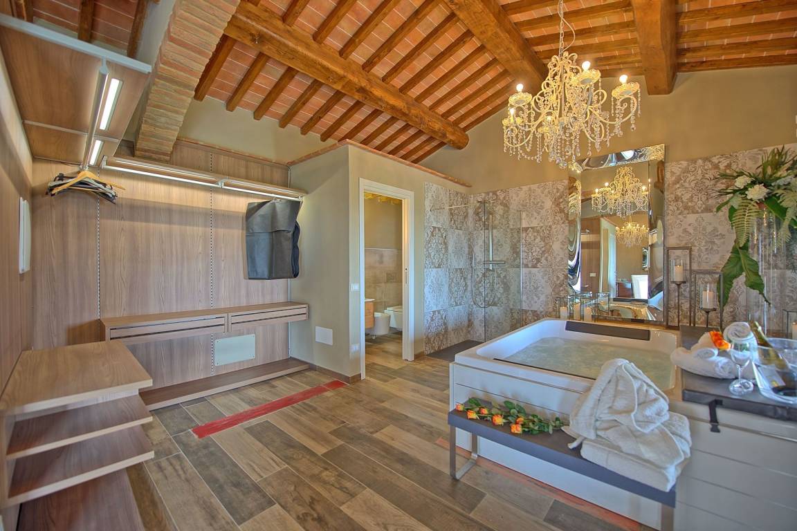 Zweiter Stock: Große Suite mit Doppelbett, Whirlpool, Badezimmer mit Dusche und Zugang zu einer Panoramaterrasse.
