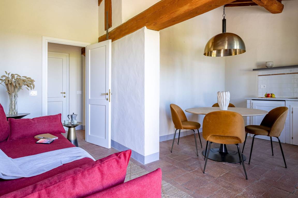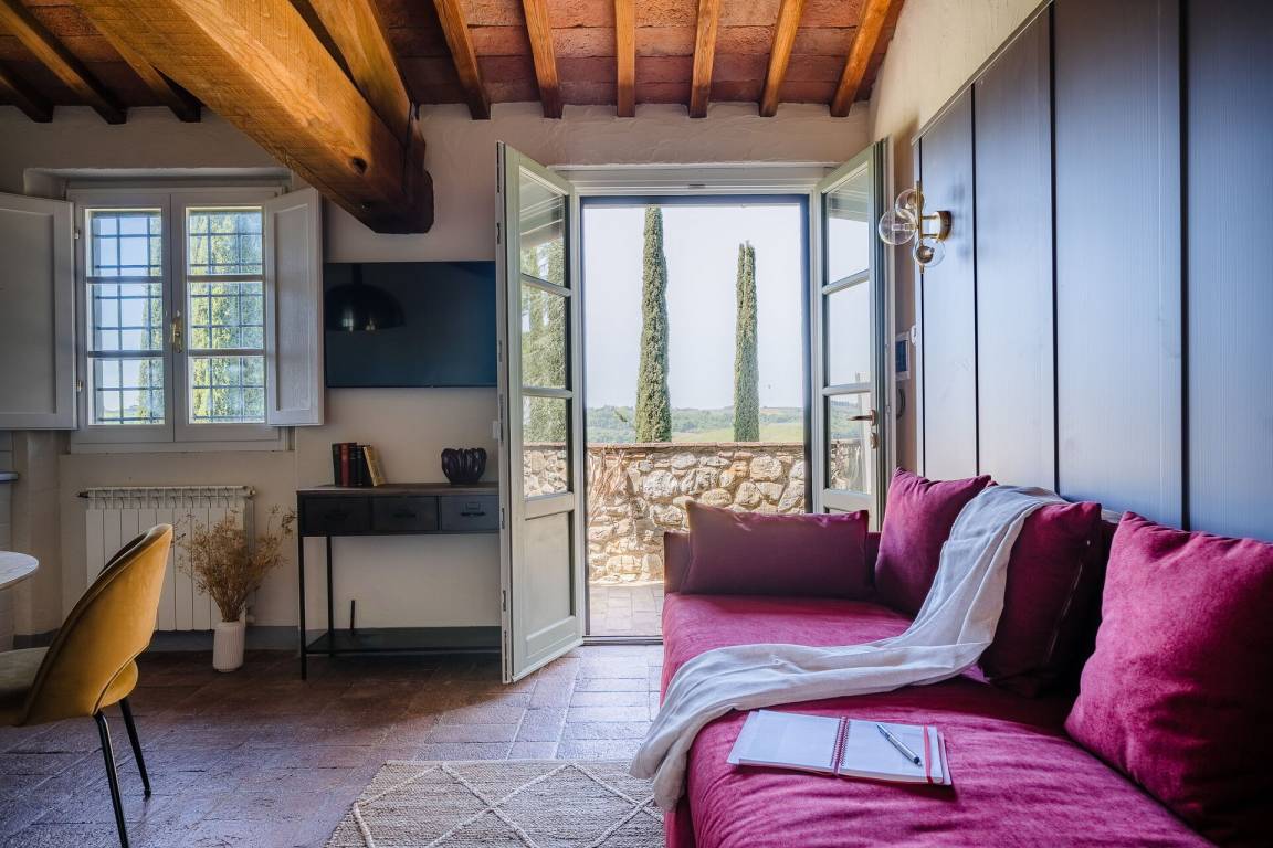 Relais Badia a Passignano - Appartamento Malvasia (38 m²) ist eine eins-Zimmer Wohneinheit, die auf eins Stockwerk gebaut ist, mit eins Badezimmer. Hier können bis zu zwei Leute schlafen.