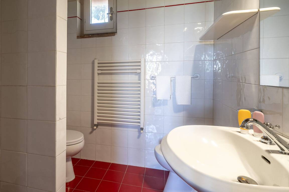 Badezimmer: Waschbecken, WC, Bidet, Dusche, Fön, WiFi Internet.