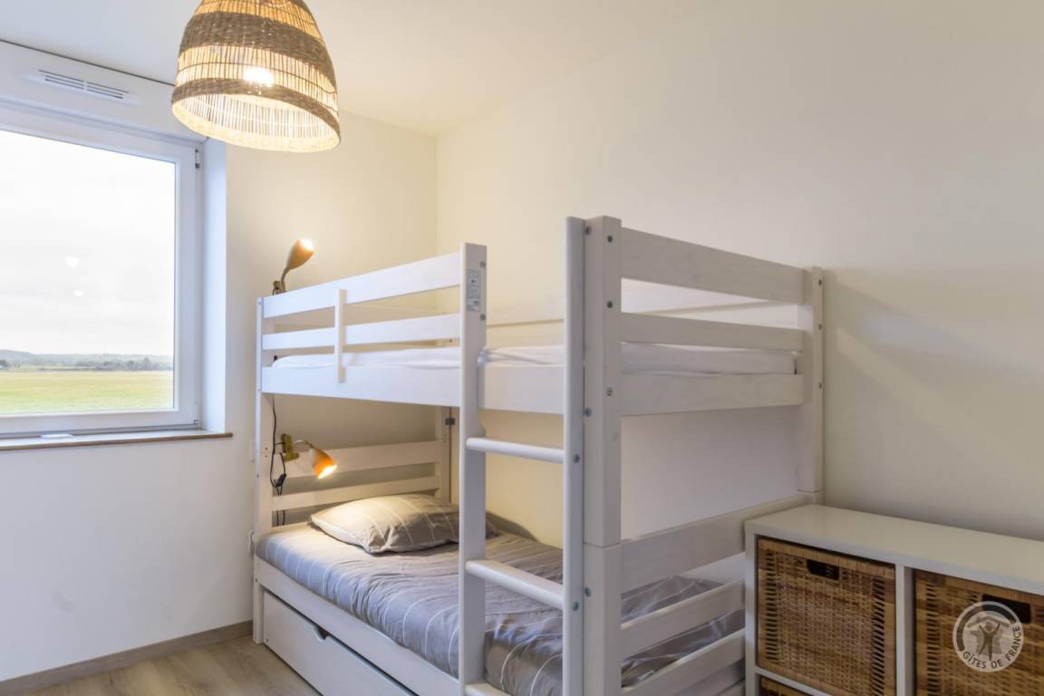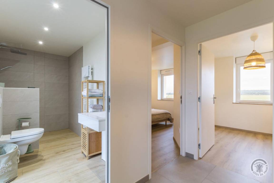 Eingebettet in die weiten, grünen Wiesen der Sélune-Mündung bietet das Haus eine unvergleichliche Verbindung zur umliegenden Natur. Raphaël ist Schäfer und hält auf diesen Weideflächen, die bei den Gezeiten vom Meerwasser überschwemmt werden, Salzwiesenschafe. Sein Alltag begleitet Sie während Ihres Urlaubs, und er ist der ideale Botschafter, um diese legendäre Bucht zu entdecken. Reiter sind mit ihren Pferden herzlich willkommen. Ob zu Pferd, mit dem Fahrrad oder zu Fuß – der Radweg führt direkt am Ferienhaus vorbei und bringt Sie zu einem 12km entfernten Naturwunder. Das Haus besticht durch seine ruhige, weiße Einrichtung und ist zudem sehr geräumig und funktional. Gäste mit eingeschränkter Mobilität werden den ebenerdigen Grundriss zu schätzen wissen. Der umzäunte, nach Süden ausgerichtete Garten mit seinem Apfelbaum steht Ihnen zur Verfügung. Er grenzt an die Schafställe und Gehege – Sie befinden sich zweifellos im Herzen der Bucht von Mt St-Michel, zum UNESCO-Welterbe gehört!