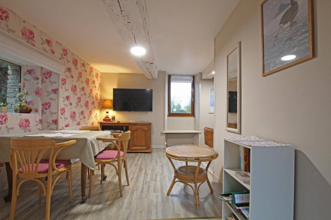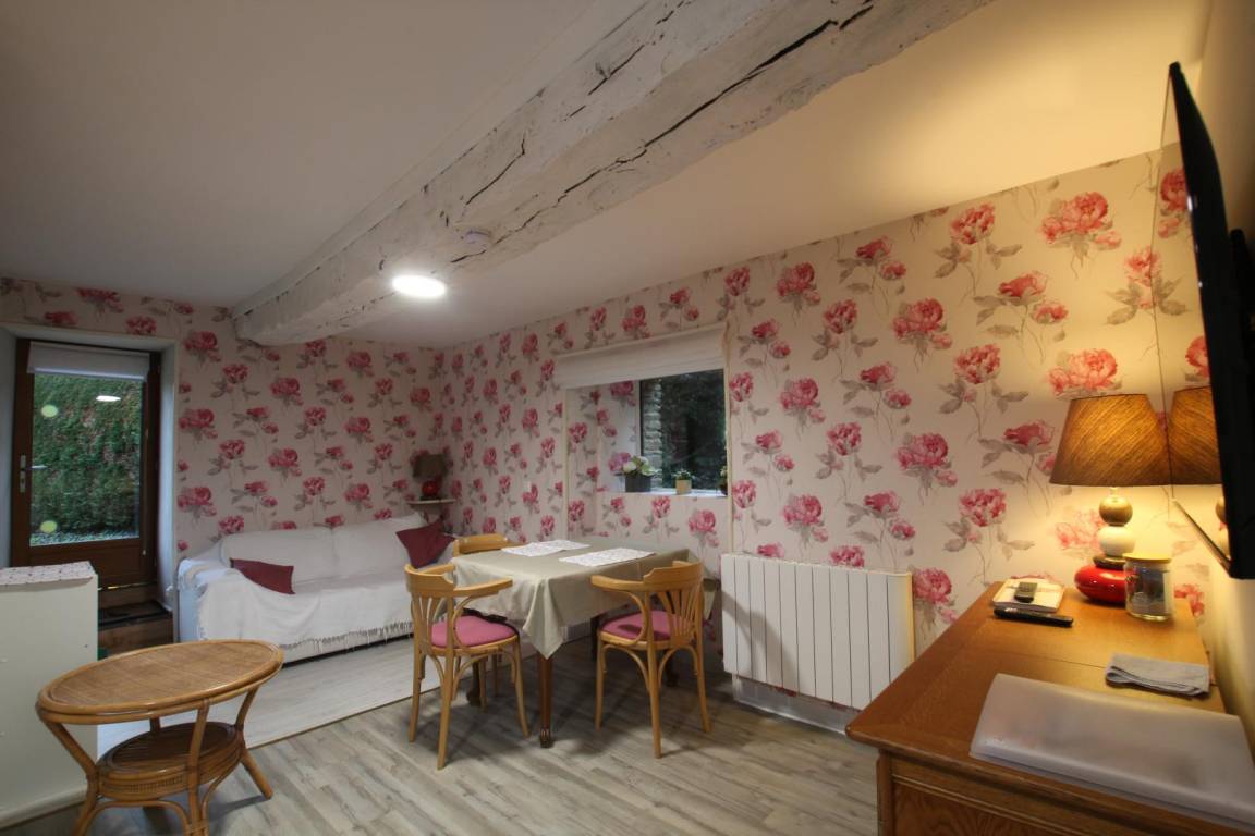 An das Haus der Eigentümer angrenzendes Haus. Erdgeschoss: Wohnzimmer. Kochnische. Duschraum und separates WC. Obergeschoss: Schlafzimmer mit 1 Doppelbett. Fernseher. DVD-Player. WLAN. Hochwertige Elektroheizung inklusive. Bettwäsche und Haushaltswäsche werden gestellt und die Betten bei Ankunft bezogen. Waschmaschine und Trockner in der Nähe der Gîte. Babybett auf Anfrage. Reinigungsservice gegen Aufpreis. Großer angelegter Garten zur gemeinsamen Nutzung mit den Gästezimmern. Terrasse. Unterstand für Fahrräder und Motorräder. Möglichkeit, Fahrräder mit Lieferung zur Gîte zu mieten. Garage. Label „Gîte au jardin". Label „Accueil vélo". Für Telearbeit geeignete Unterkunft (eigener Bereich mit Schreibtisch, Stuhl, Lampe, 4G-Internetverbindung, Steckdosen in der Nähe).