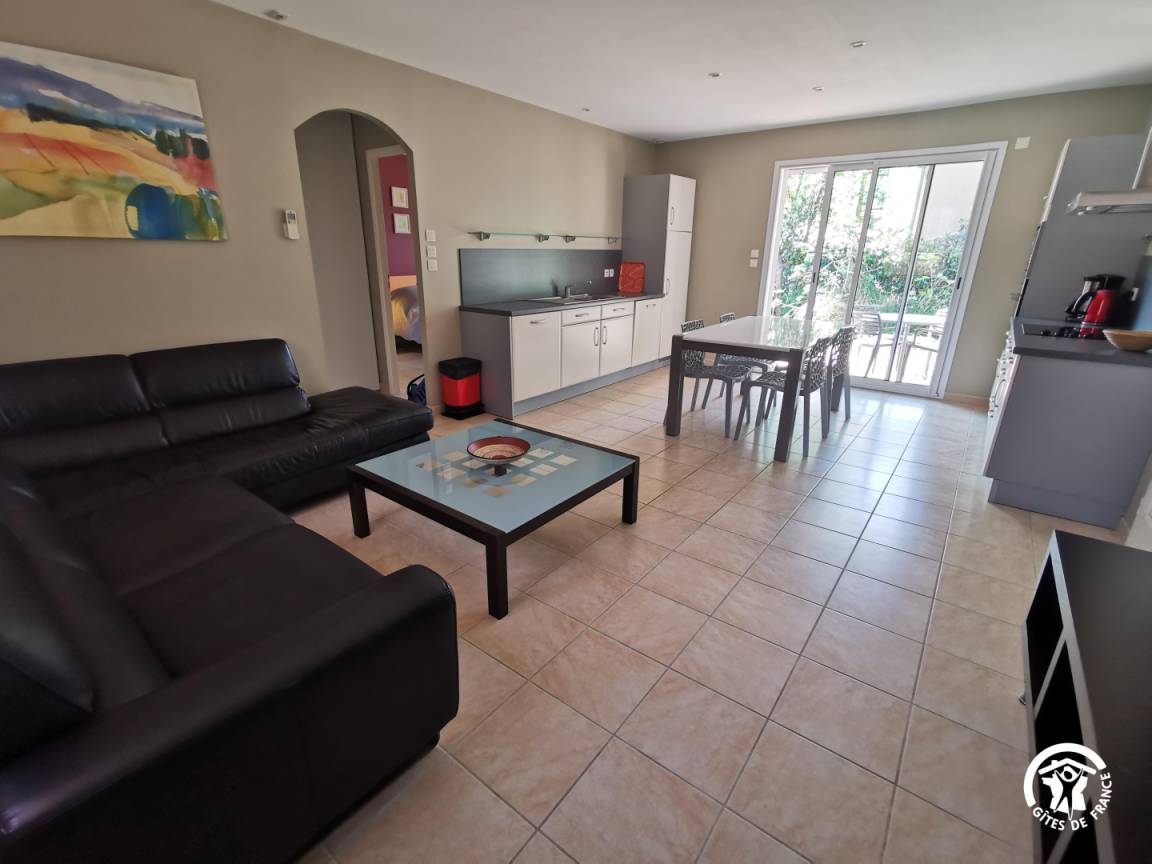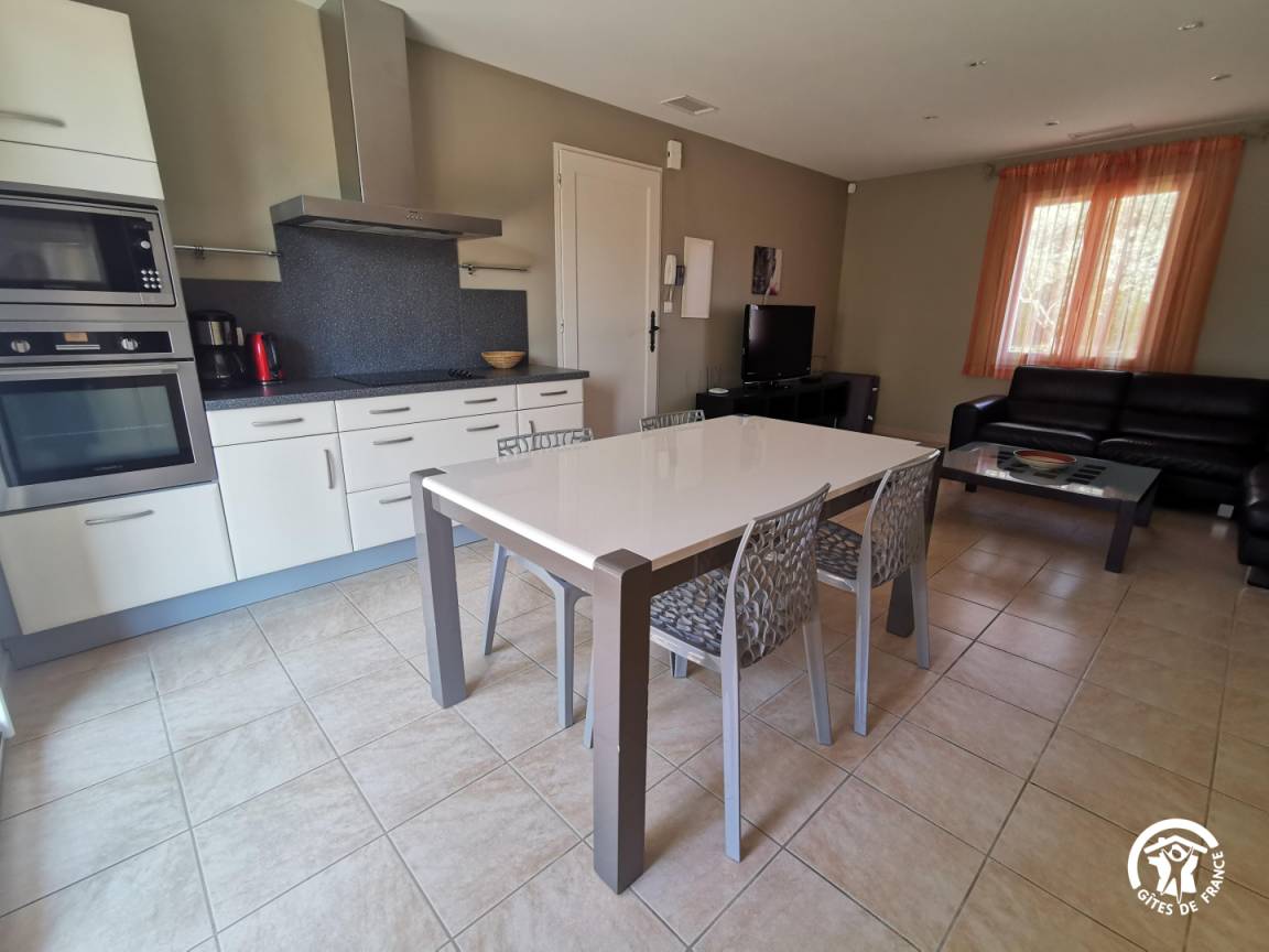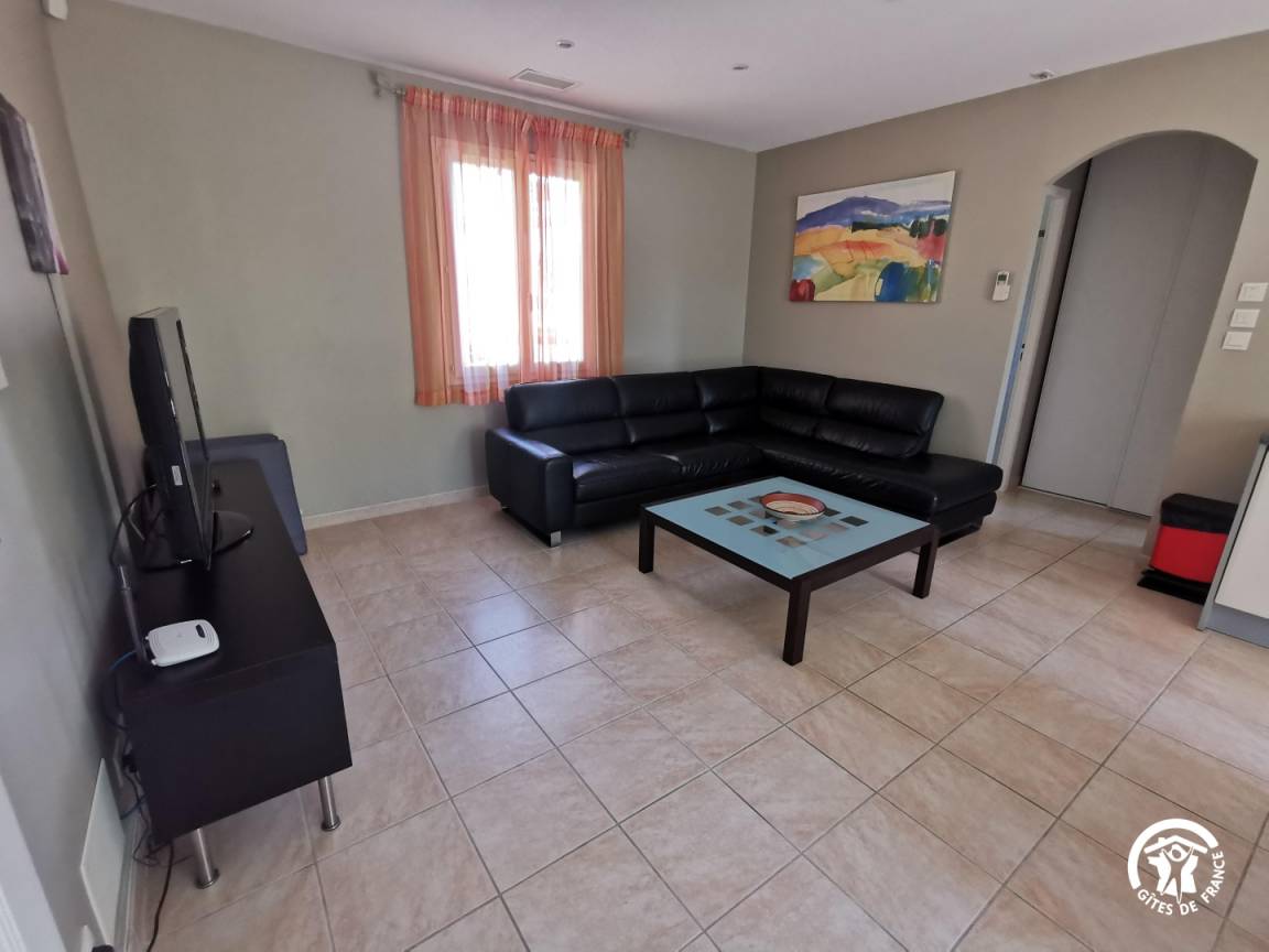 „Bien accueilli, propriétaires sympathique, place dans le logement (2 personnes très grand chien) impeccable, situation permettant assez bien de directions possibles pour visiter, belle piscine couverte covertible offrant une utilisation par tous temps, super séjour, merci Danièle et Christian.“