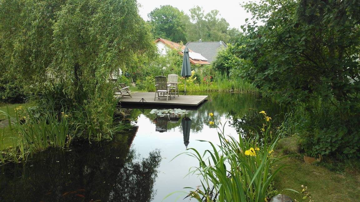 Studiowohnung im Grünen vor den Toren Celles - außer Natur nix, aber davon reichlich. Hier können sie absolute Ruhe finden, den Hühnern beim Leben zuschauen, im Schatten der Kastanie sitzen, am Steg die Fische füttern, sich im Schwimmteich abkühlen und sich von der Abendsonne beim Budda bescheinen lassen.