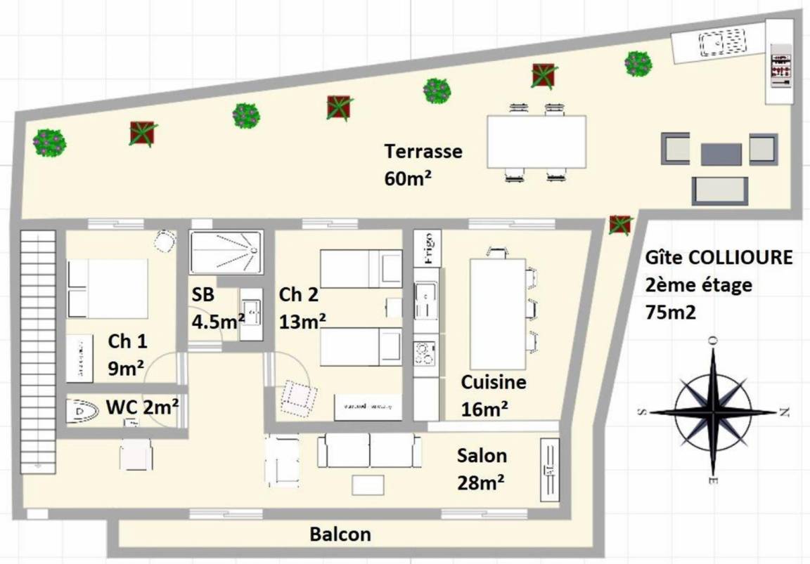 75 m² Gîte ∙ 2 Schlafzimmer ∙ 4 Gäste