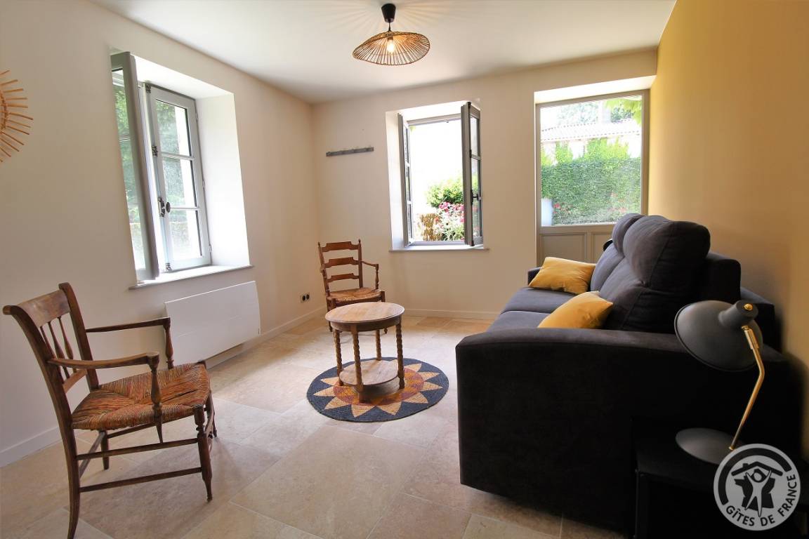 „Gîte très propre, cuisine très bien équipée, chambres spacieuses et bonne literie. Le gros bémol concerne le mobilier du salon qui n’est pas du tout confortable et insuffisant pour 6 personnes, un canapé digne de ce nom et deux fauteuils contemporains seraient les bienvenus.“