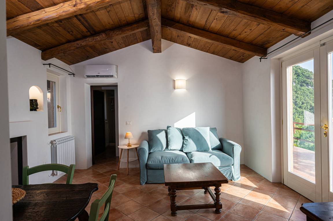 Not far from Maratea lies Casetta Lupo – a gorgeous retreat between sea and mountains. Completely restored in 2023, the small, old farmhouse now awaits you in new splendor as a modern and cozy holiday home. With its double bedroom, bathroom (shower/WC/bidet; hair dryer), living-dining room and kitchen, the Casetta is a lovely and perfect accommodation for a couple. The sofa in the living-dining room could be used as a sleeping facility for another two persons.