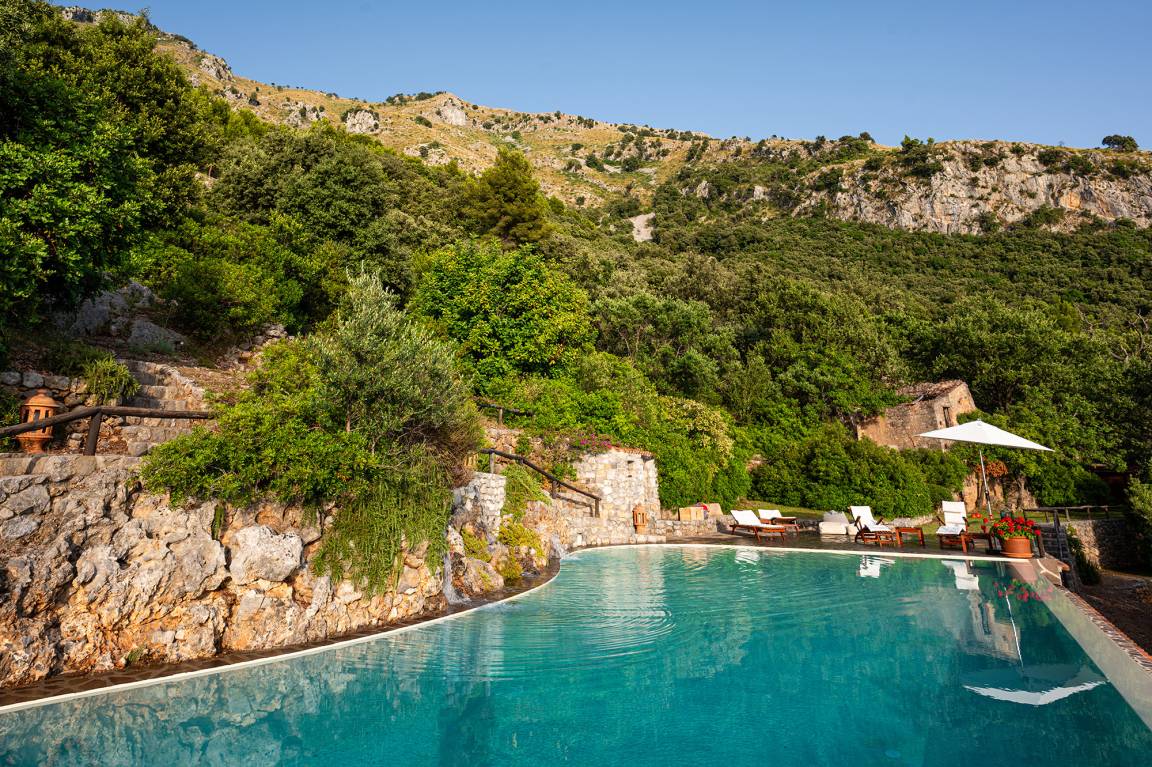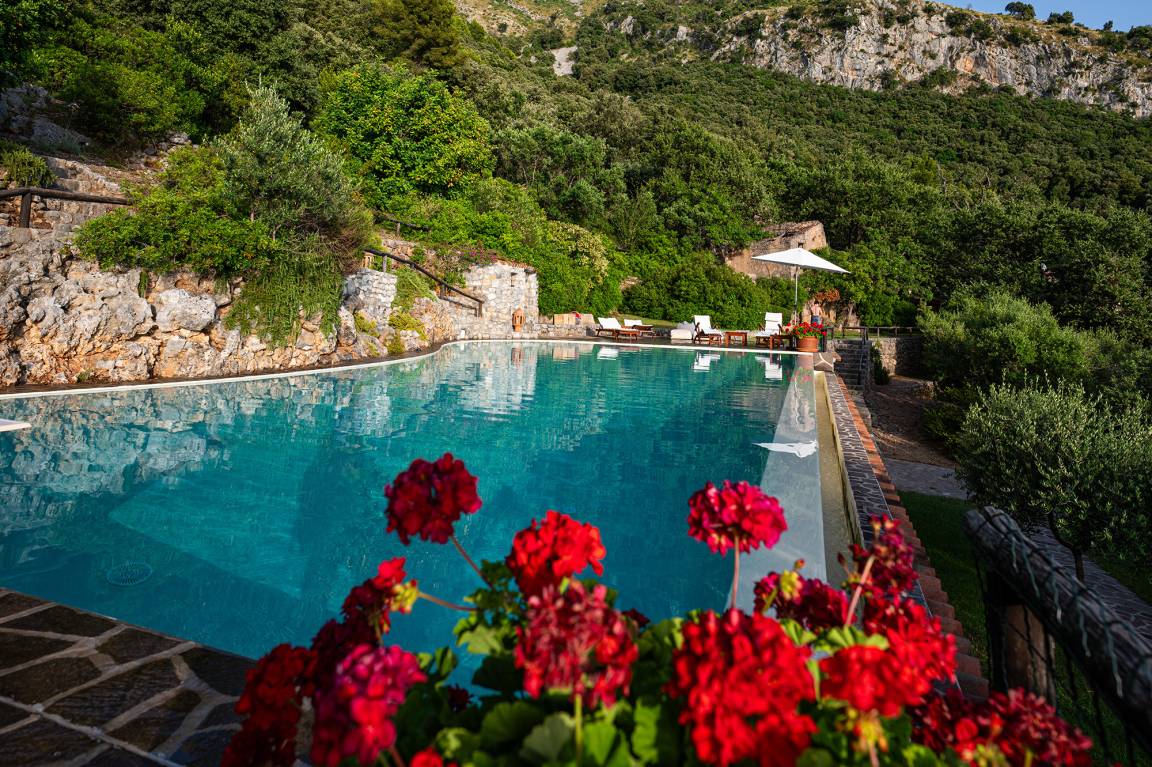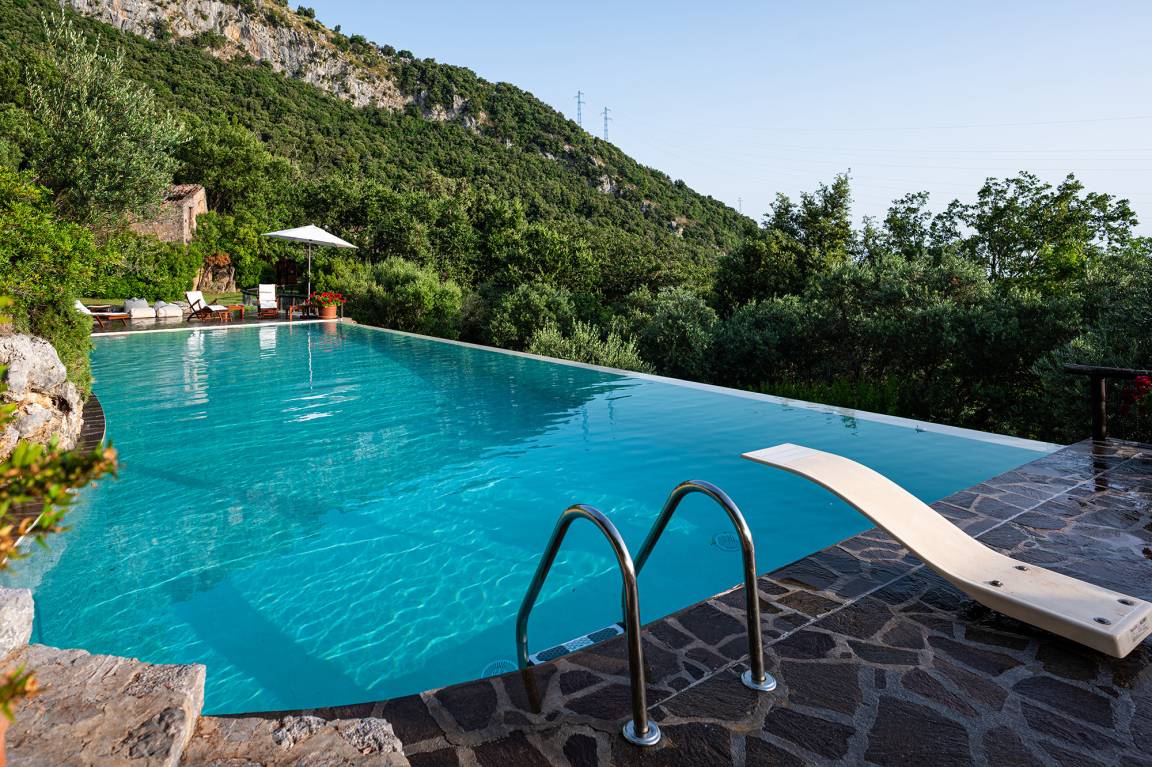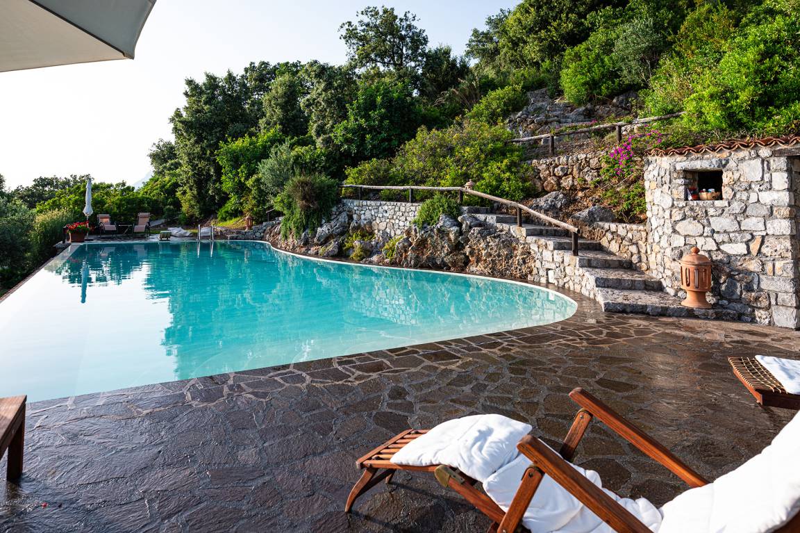 Another highlight at Casetta Lupo is the pool with nearly 17 m in length and a maximum depth of 2.20 m. The pool is shared by the guests staying at Casetta Lupo and the owners, who live in Rome and stop at Maratea only every now and then.