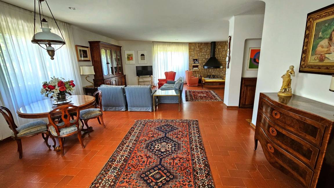 Küche (15 m²): gut ausgestattete Küche, Spülmaschine, Kühlschrank, Ofen, Toaster, Ausgang auf den Garten, Ausgang auf die Veranda.