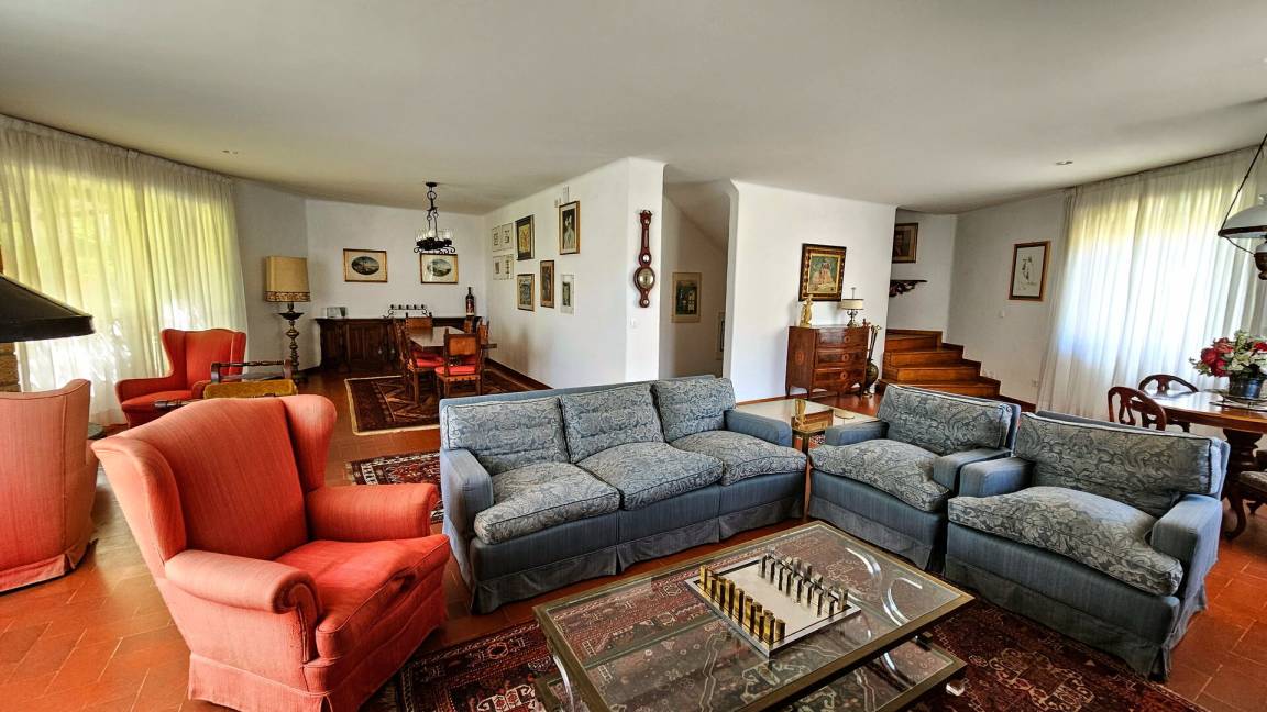 Wohnzimmer (75 m²): Sofa, Sessel, Kamin, Esstisch, WiFi Internet, TV, Stereoanlage, Ausgang auf den Garten, Ausgang auf die Veranda.