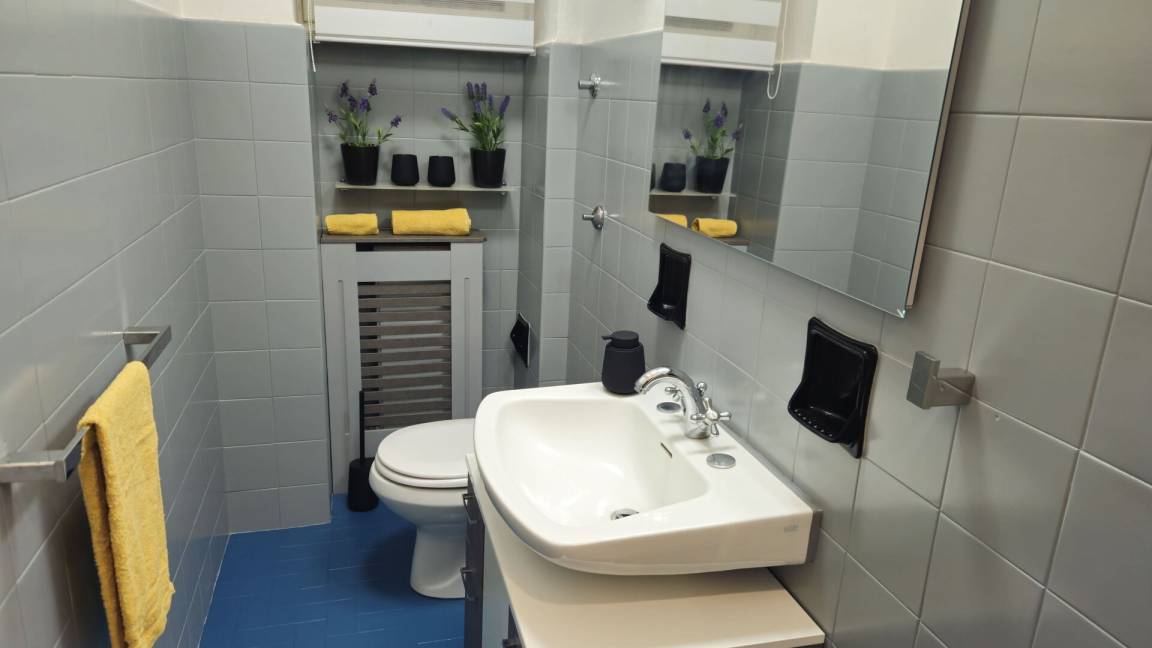 Badezimmer 2: Waschbecken, WC, Bidet, Dusche.