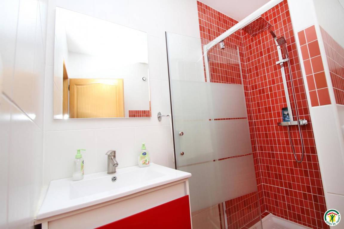 Komplett frei stehendes Haus auf 2 Etagen. Erdgeschoss: riesiger, lichtdurchfluteter Aufenthaltsraum, günstig ausgerichtet mit gut ausgestatteter Küche und Wohnzimmer, Bad (Dusche) mit WC. Obergeschoss: 3 Zimmer, eines davon mit eigenem Bad (Dusche), (1 Bett 140 cm) (2 Betten 90 cm) (1 Bett 140 cm), Erholungsbereich mit Schlafsofa im Flur, Bad (Dusche), WC. Eigene Terrasse mit Garten.