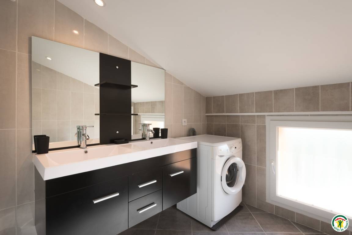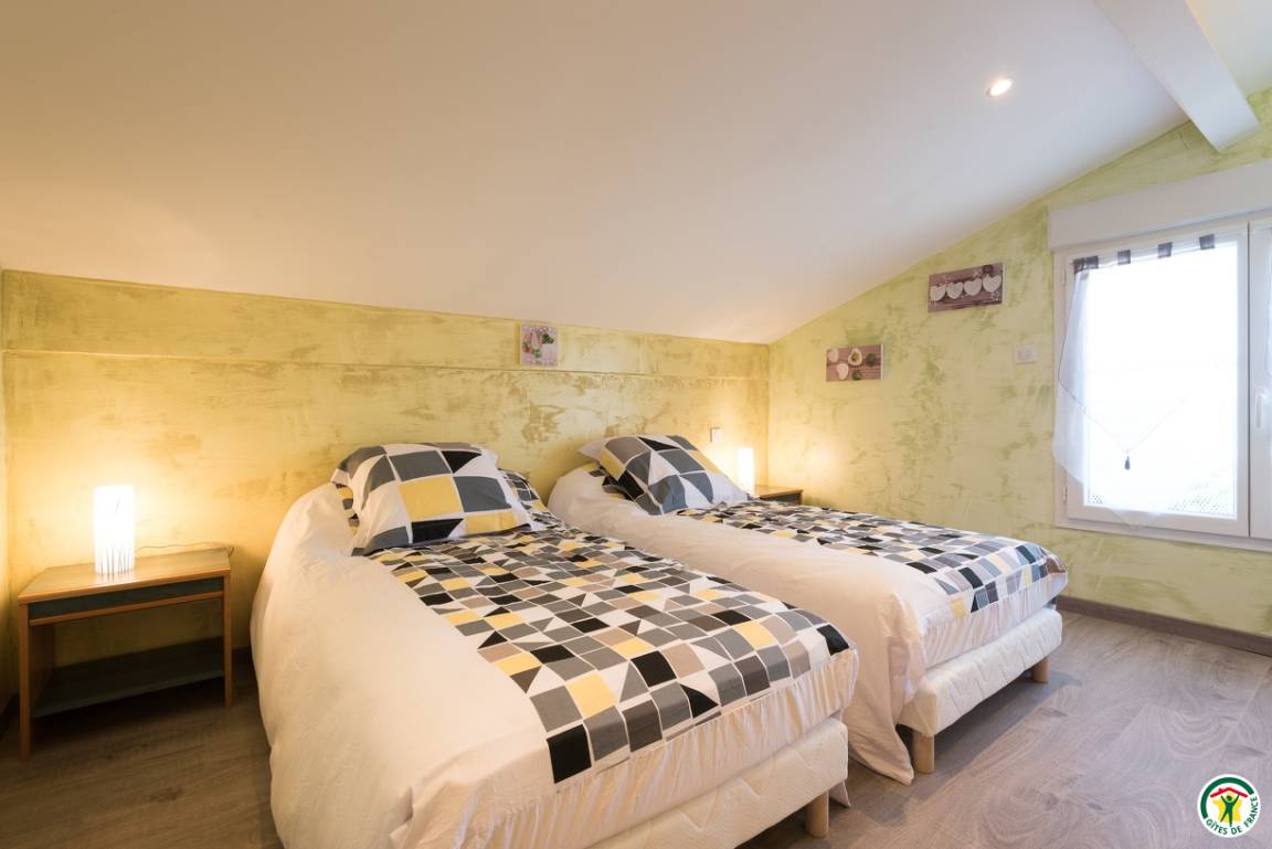 Erdgeschoss: gut ausgestattete Küche/Wohnzimmer, WC. Obergeschoss: 3 Schlafzimmer (1 Bett 160 cm) (2 Betten 90 cm oder 1 Bett 180 cm) (2 Betten 90 cm oder 1 Bett 180 cm), Bad mit Dusche, WC. Eigene Terrasse mit Garten. Whirlpool, zur gemeinschaftlichen Nutzung mit 2 Gästezimmern.
