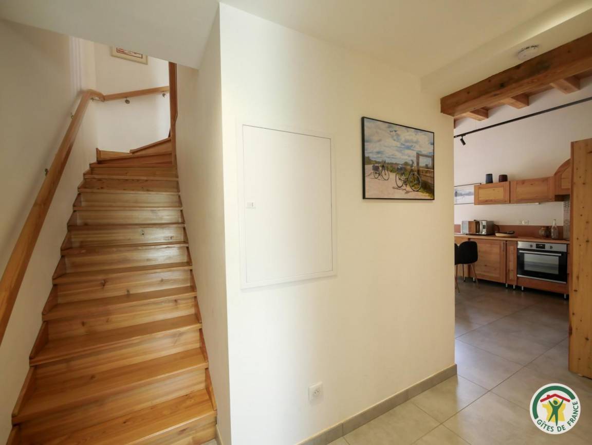 „Beau gite, très confortable. Dommage que les draps ne soient pas fournis pour le même prix. Beaucoup de locations sur un espace restreint, cela présente des risques par rapport à la tranquillité. Il faudrait interdire les chiens...“