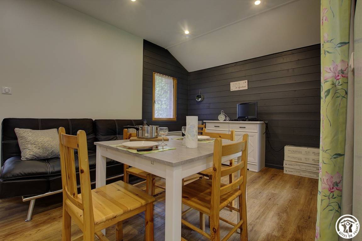 Im Herzen eines kleinen Dorfes, auf dem Campingplatz und in der Nähe des Flusses Albarine gelegen, bietet das Chalet Arc-en-Ciel (35 m²) mit seiner Farbpalette aus Weiß und Anthrazitgrau ein gemütliches Ambiente. Der Zugang erfolgt über die Terrasse des Chalets. Der Eingang führt direkt in das Wohnzimmer mit offener Küche und Wohnzimmer mit einem Bett (umbaubar). Zwei Schlafzimmer sind unabhängig: eins mit einem Bett für zwei Personen (140 x 200) und ein weiteres mit zwei Einzelbetten. Bettwäsche wird gestellt und die Endreinigung ist inklusive. Badezimmer mit Dusche und integriertem WC. Elektroheizung. Die überdachte Terrasse wird für gesellige Abende mit Freunden oder der Familie geschätzt. Gegenüber den Chalets befindet sich ein Spielplatz mit Tischtennis, Boule und Pétanque. Angler können sich entspannen und im Fluss oder im hoteleigenen See Fische angeln. Neben den Chalets befindet sich eine überdachte Wasserstelle mit Spüle und Arbeitsfläche zum Reinigen der Fische. Ideale Lage z