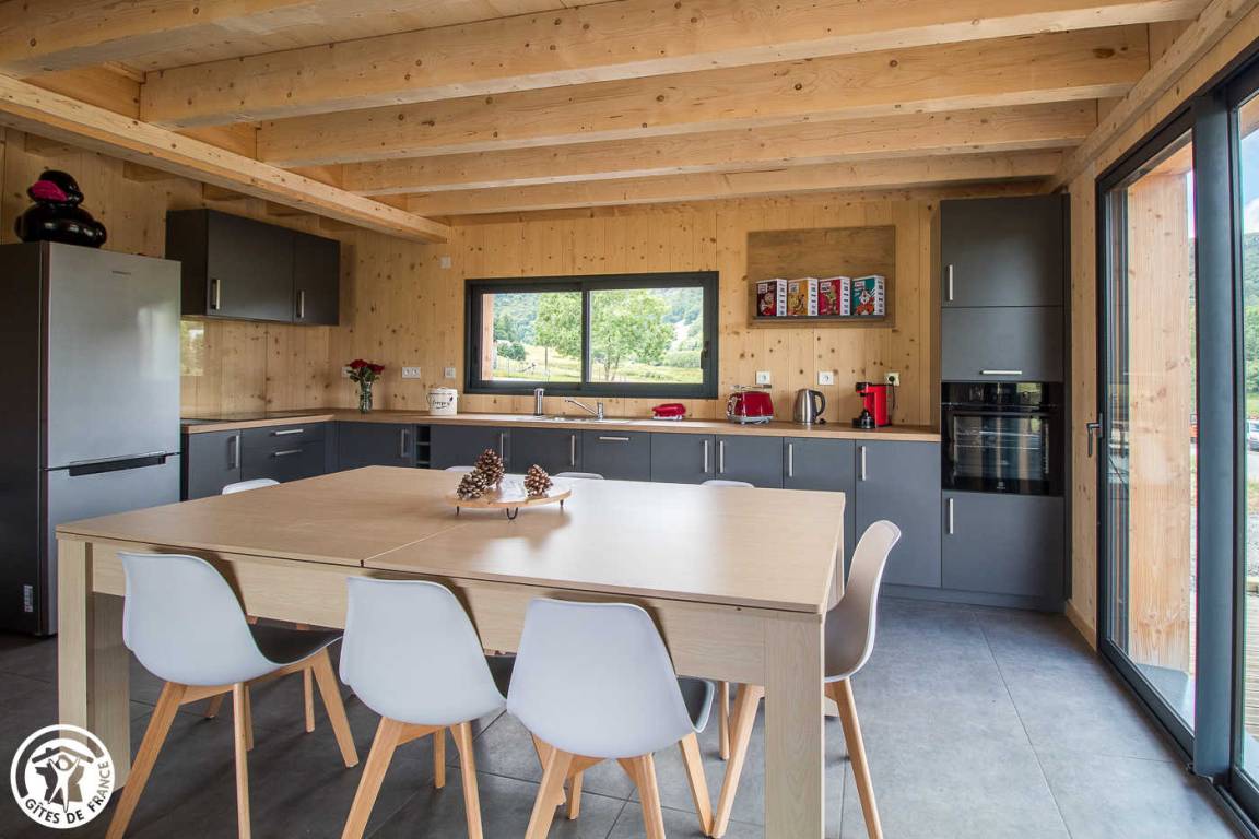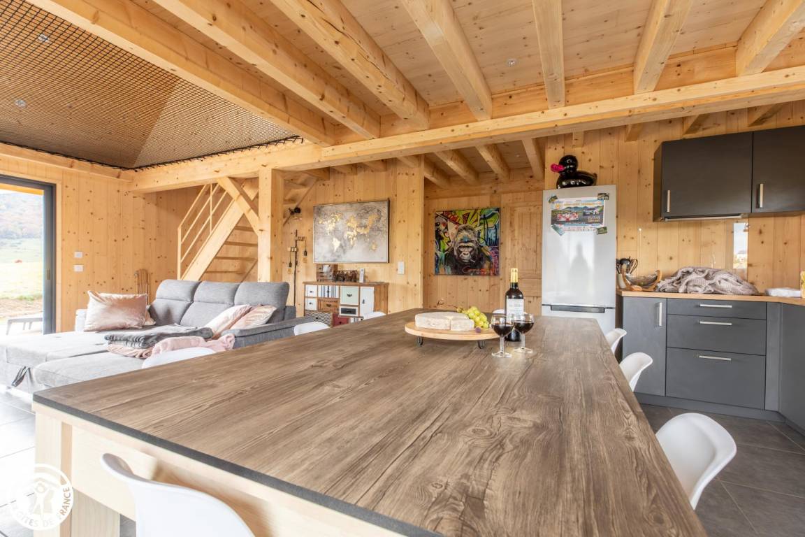 „Chalet très confortable avec de belles prestations et beaucoup de matériel et ustensiles sur place. (Dommage que nous n'avons pas la liste avant) Vue splendide, au calme. La pièce à vivre est particulièrement spacieuse et lumineuse, parfaite pour des repas à plusieurs.“