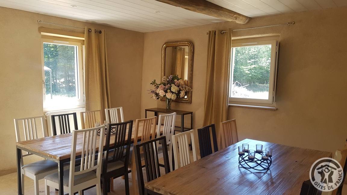 „Gite en pleine nature, parfait pour réunions familiales ou en amis. Bon confort et équipements au top pour 15 personnes. Son isolement permet de fêter sans déranger“