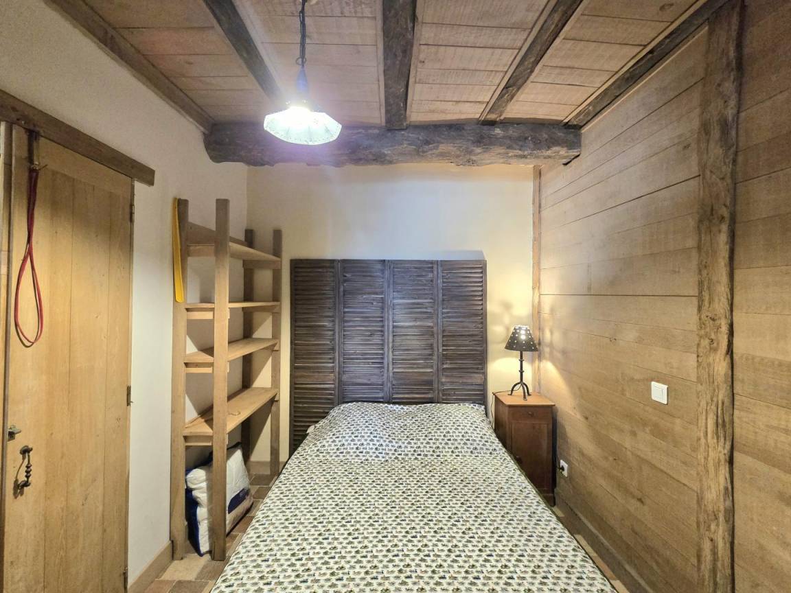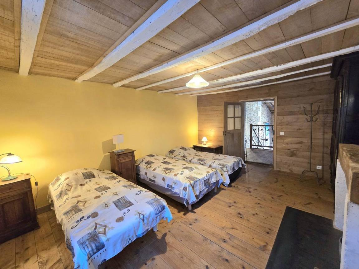 An eine Scheune und ein Haus angrenzende Gîte auf 3 Ebenen. Im Erdgeschoss: ausgestattete Küche (4 Gasbrenner, Geschirrspüler, Mini-Backofen), offen zu großem Wohnzimmer mit Essbereich, Sitzecke, TV, WLAN und Holzofen (einzige Heizung). Schlafzimmer für 1 Person (Fenster zum Wohnzimmer) und Badezimmer mit ebenerdiger Dusche und WC. Im 1. Stock: Schlafsaal mit drei 90 cm Betten, Schlafzimmer mit 160 cm Bett, weiteres Bad mit Dusche und separate Toilette. Über eine Wendeltreppe erreichen Sie den 2. Stock: Schlafzimmer mit zwei 80 cm Betten, umwandelbar in 160 cm Bett. Draußen: geschlossener Innenhof (ca. 100 m²) mit Gartenmöbeln und Gasgrill. Zwei Parkplätze vor Ort. Einige Optionen gegen Aufpreis.