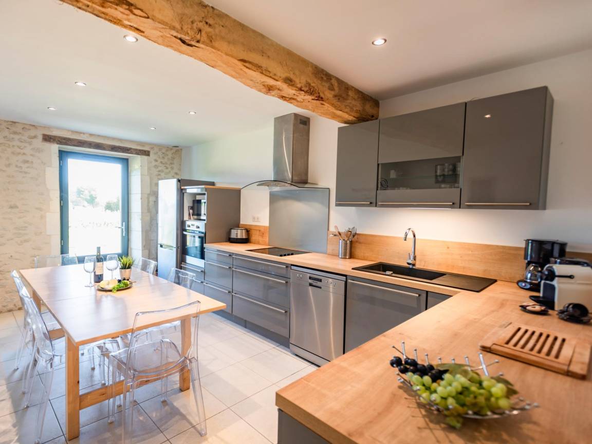 „Der Aufenthalt war super!Das Ferienhaus ist komplett ausgestattet und geschmackvoll eingerichtet. Die Küche ist sehr komplett, mit einem schönen großen Esstisch, auch das Wohnzimmer ist gemütlich mit stimmungsvoller Beleuchtung und angenehmen Möbeln. Außerdem gibt es im Erdgeschoss ein Doppelzimmer mit eigenem Bad mit Massagedusche. Im zweiten Stock befinden sich drei Schlafzimmer mit eigenem Bad, freistehender Badewanne und Massagedusche. Der Außenbereich war auch großartig schöne Terrasse für 10 Personen und schöne Aussicht über die Landschaft und ein altes Schloss. Es gab auch einen privaten Pool, der von den schönen authentischen (stabilen) Mauern mit einem üppigen Garten umgeben war. Wir fanden auch die Lage perfekt, genau zwischen den Regionen Dordogne, Bordeaux und Cognac. Wir besuchten die Weinberge von Saint-Émilion (ca. 1 Stunde) und mehrere Häuser in Cognac (30 Minuten).Schön ist auch die Stadt Bordeaux (ca. 1 Stunde). Haben Sie auch einen schönen Standtag in Royan (ca. 1 Stunde)“